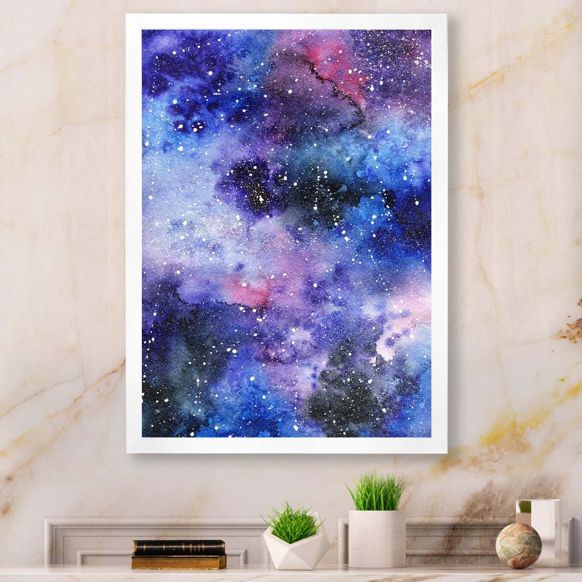 Designart "Blue And Purple Galaxy Liquid Ink" Modern Framed Wall Art
