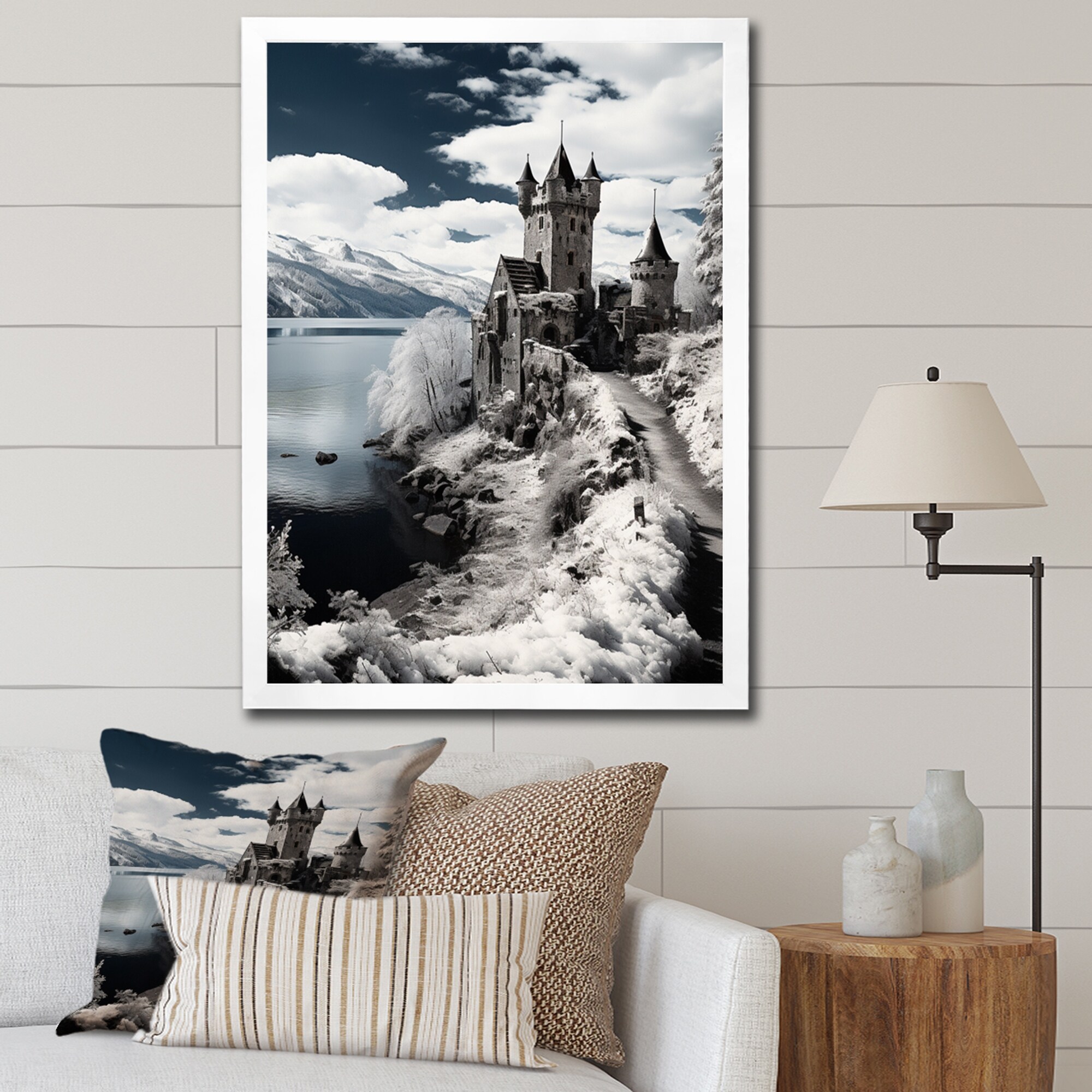 Designart "Germany Beautiful Landscape Black And White" Germany Framed Canvas Print
