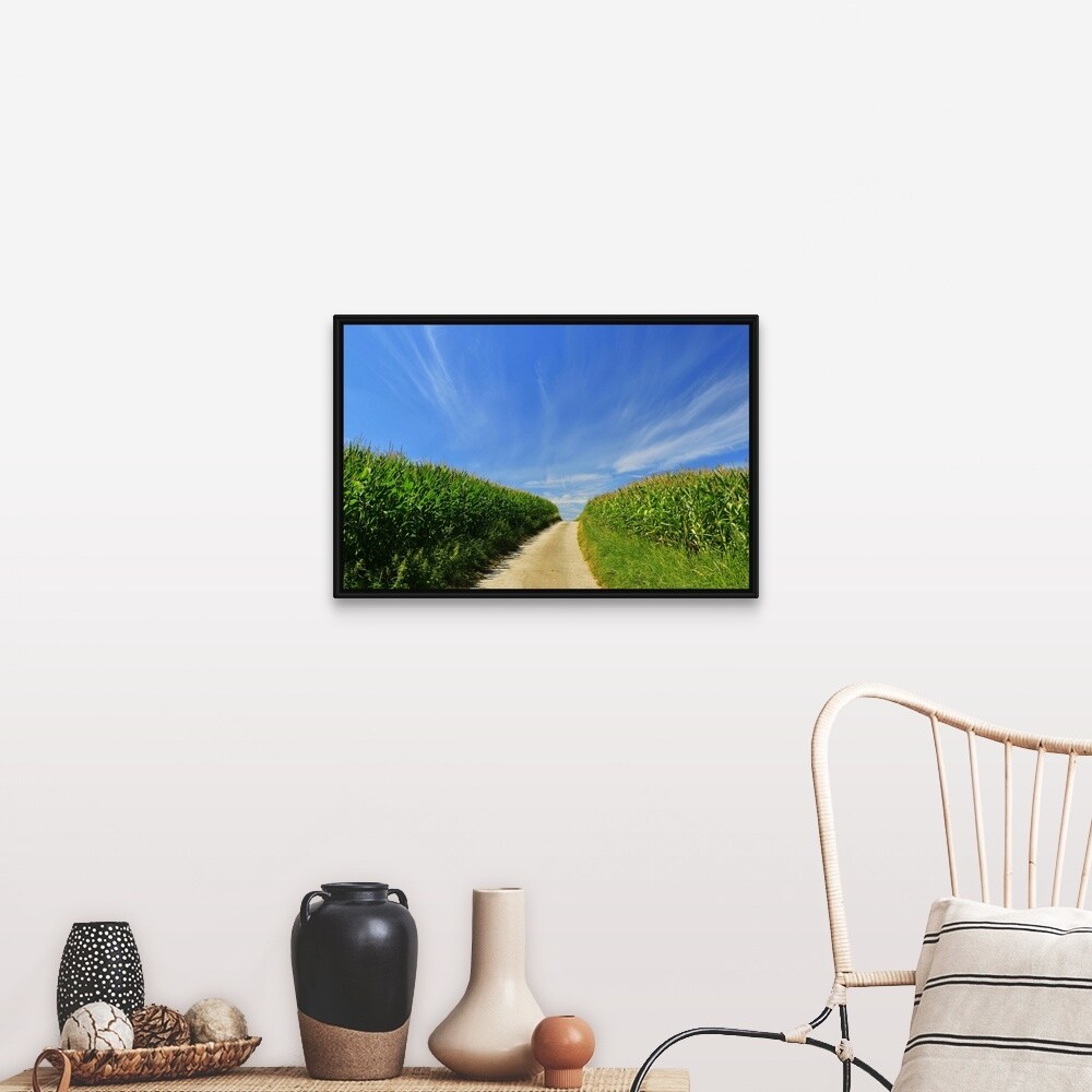 "Road through Cornfield, Germany" Black Float Frame Canvas Art
