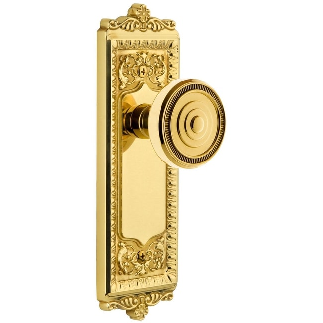 Grandeur Windsor Solid Brass Rose Passage Door Knob Set with Soleil