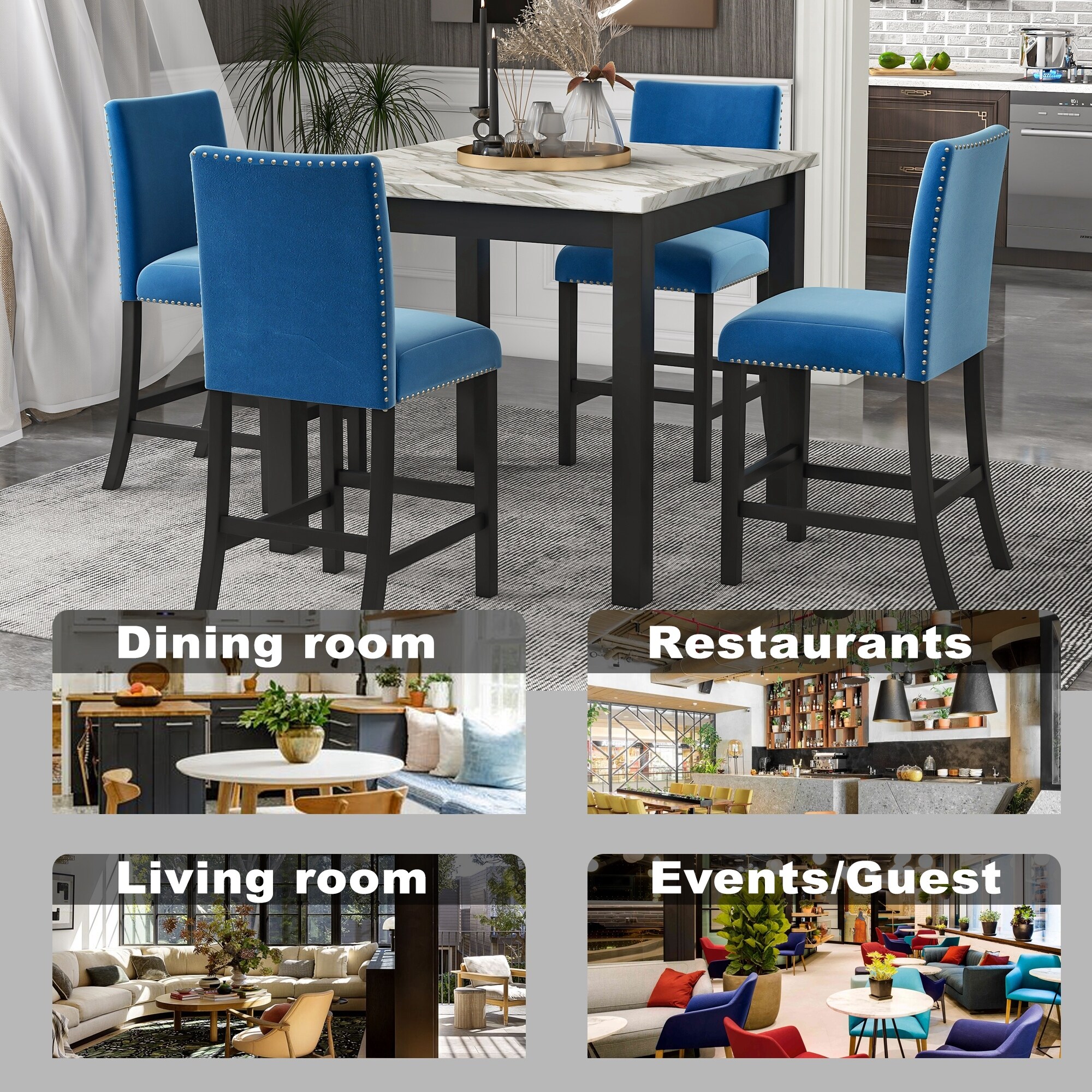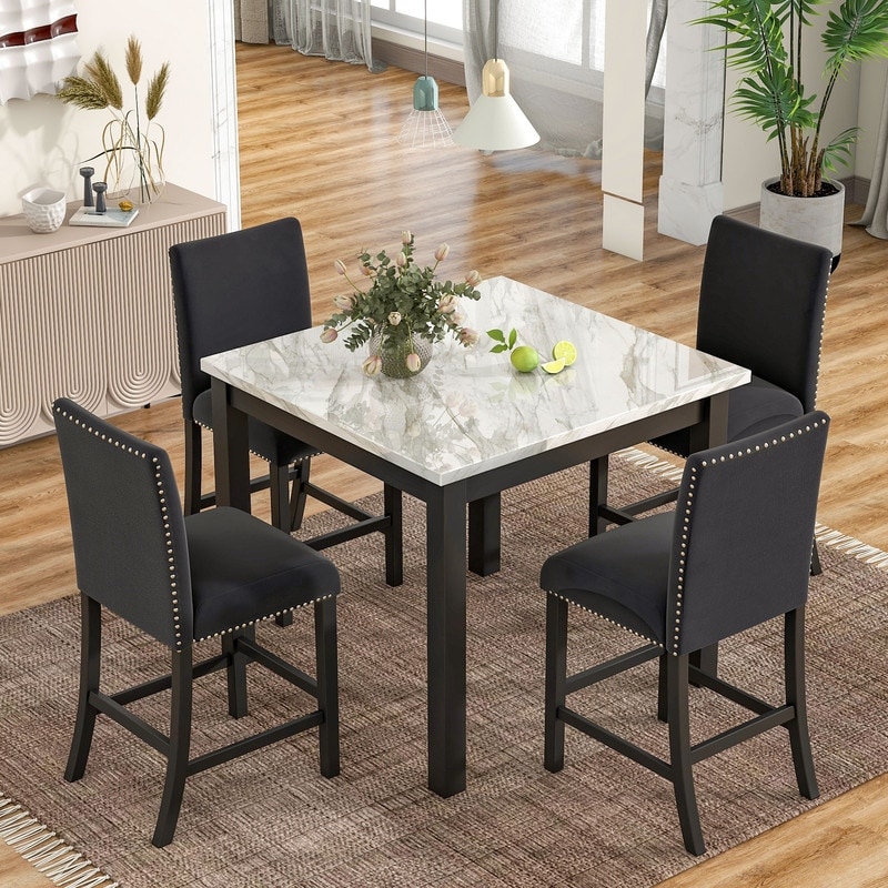 5-piece Counter Height Dining Table Set with 1 Faux Marble Dining Table and 4 Upholstered-Seat Chairs