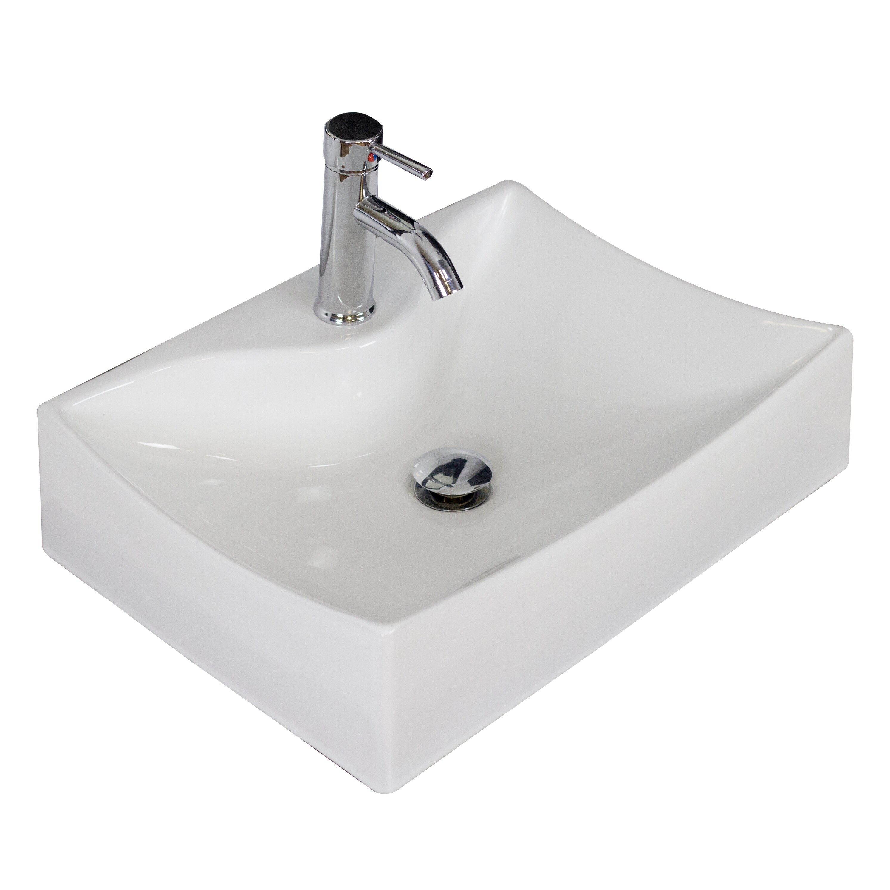 American Imaginations 23.5-in. W Above Counter White Vessel Set for 1 Hole Center Faucet