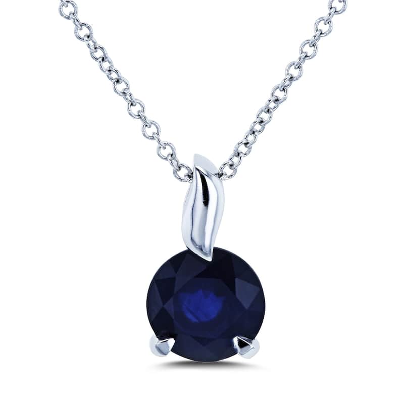 Annello by Kobelli 14k White Gold Round Blue Sapphire Solitaire Pendant and Chain Necklace