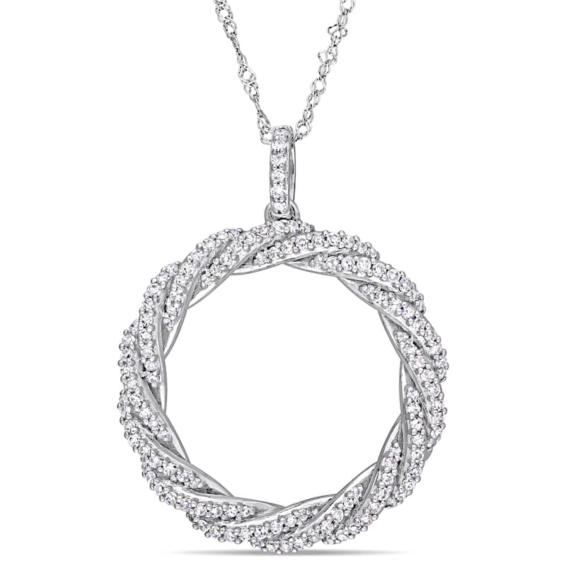 Miadora Signature Collection 14k White Gold 1/2ct TDW Diamond Twisted Open Circle Necklace