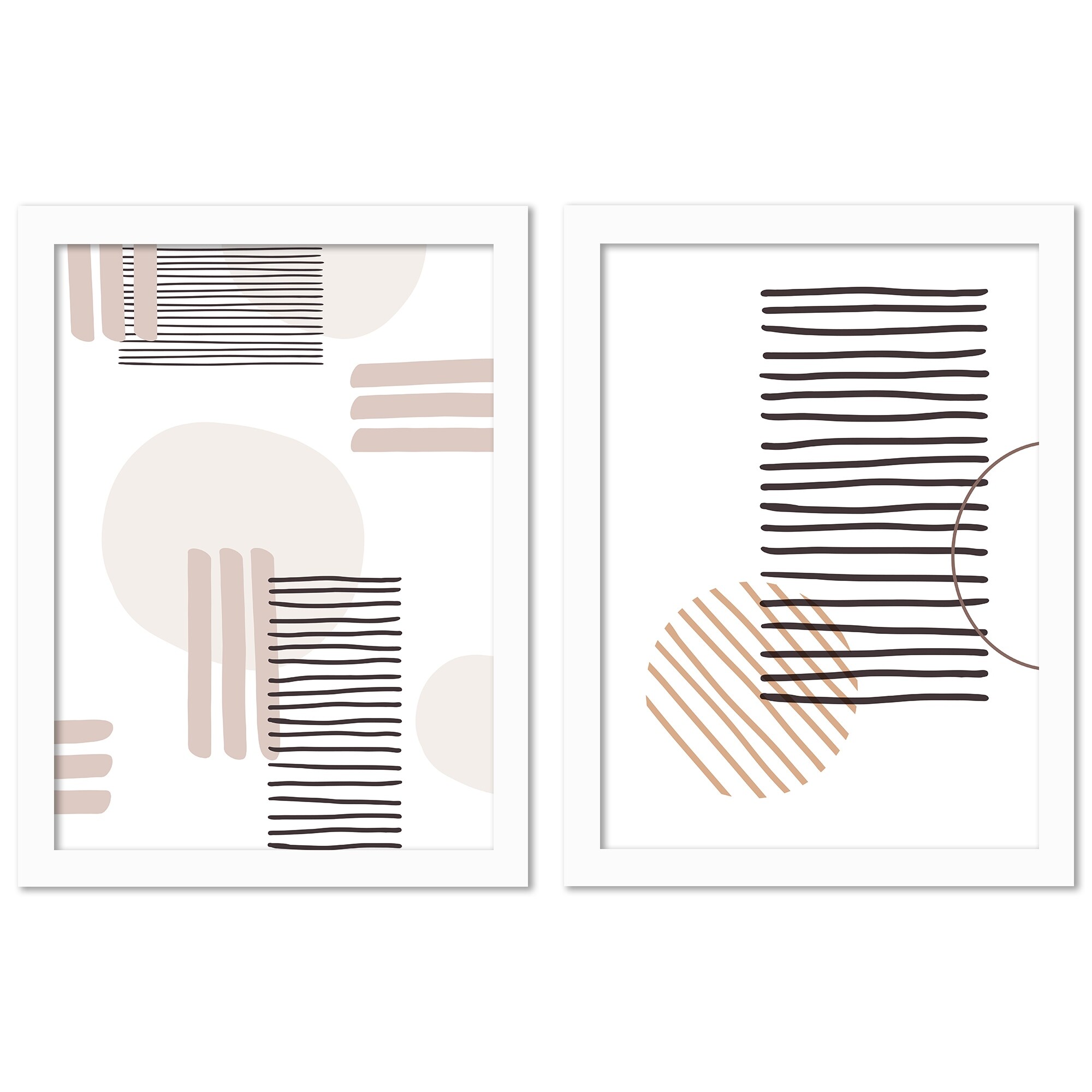 Abstract Lines And Circles 2 Piece White Framed Print Wall Art Set