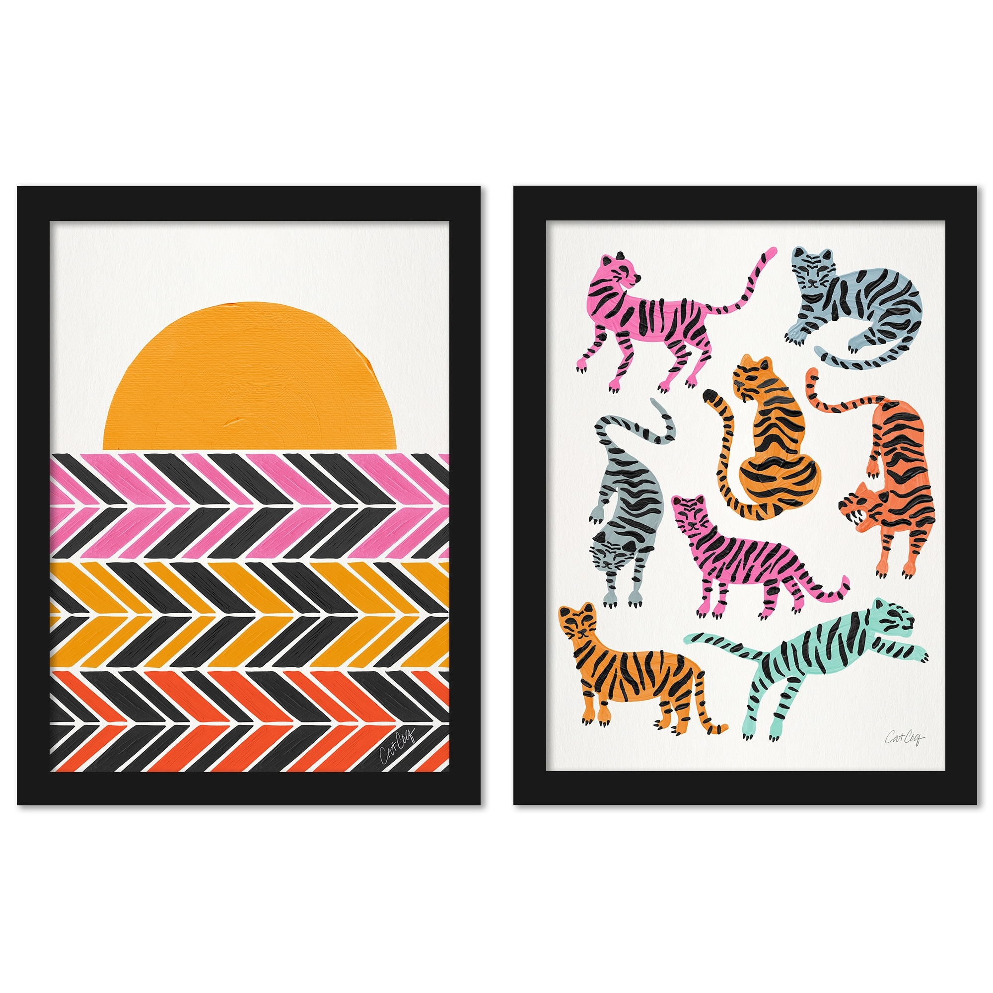 Black Warm Retro Sunset by Cat Coquillette - 2 Piece Black Framed Print Set