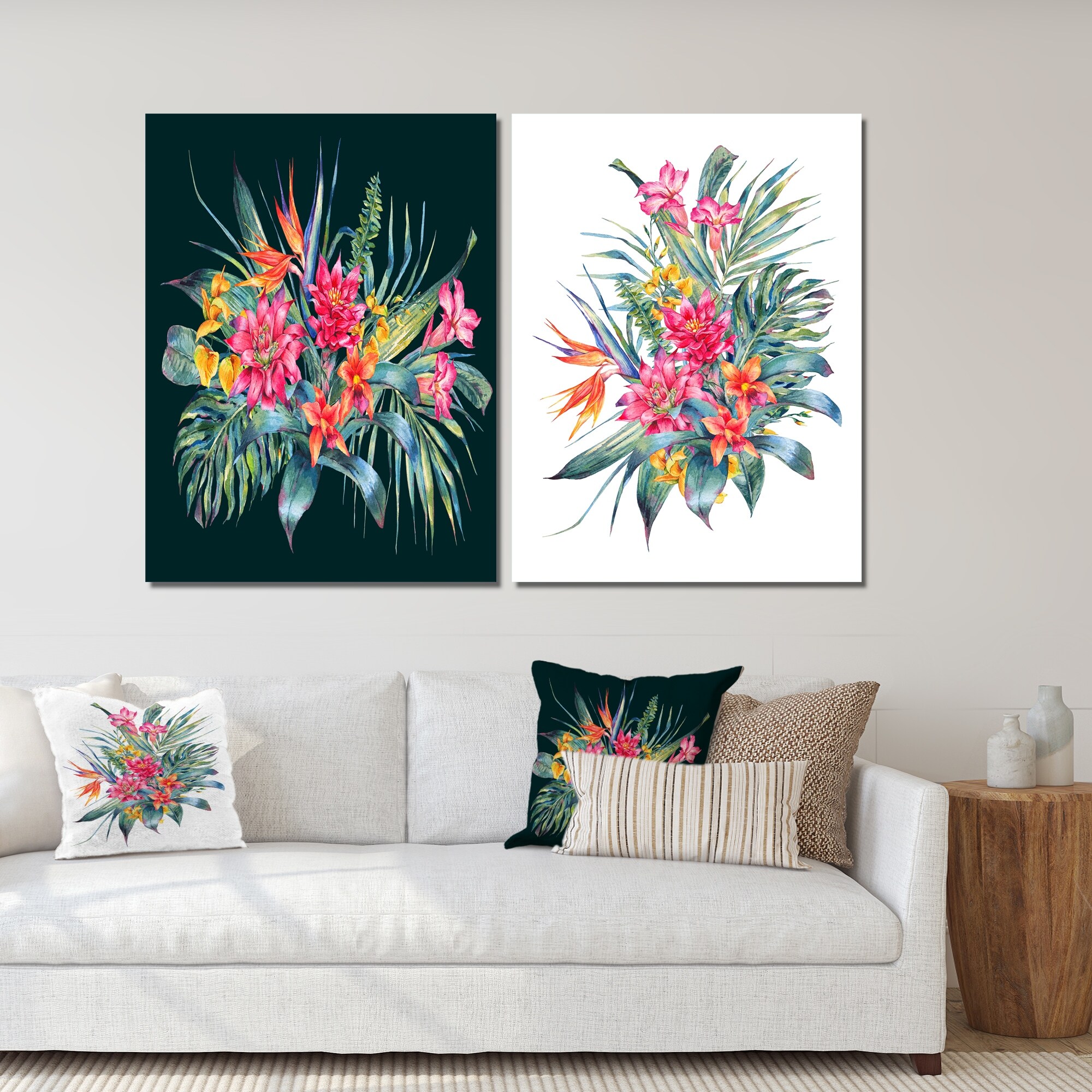 Designart "Tropical Boho Wildlife Decor II" Cottage Framed Art Set of 2 Pieces
