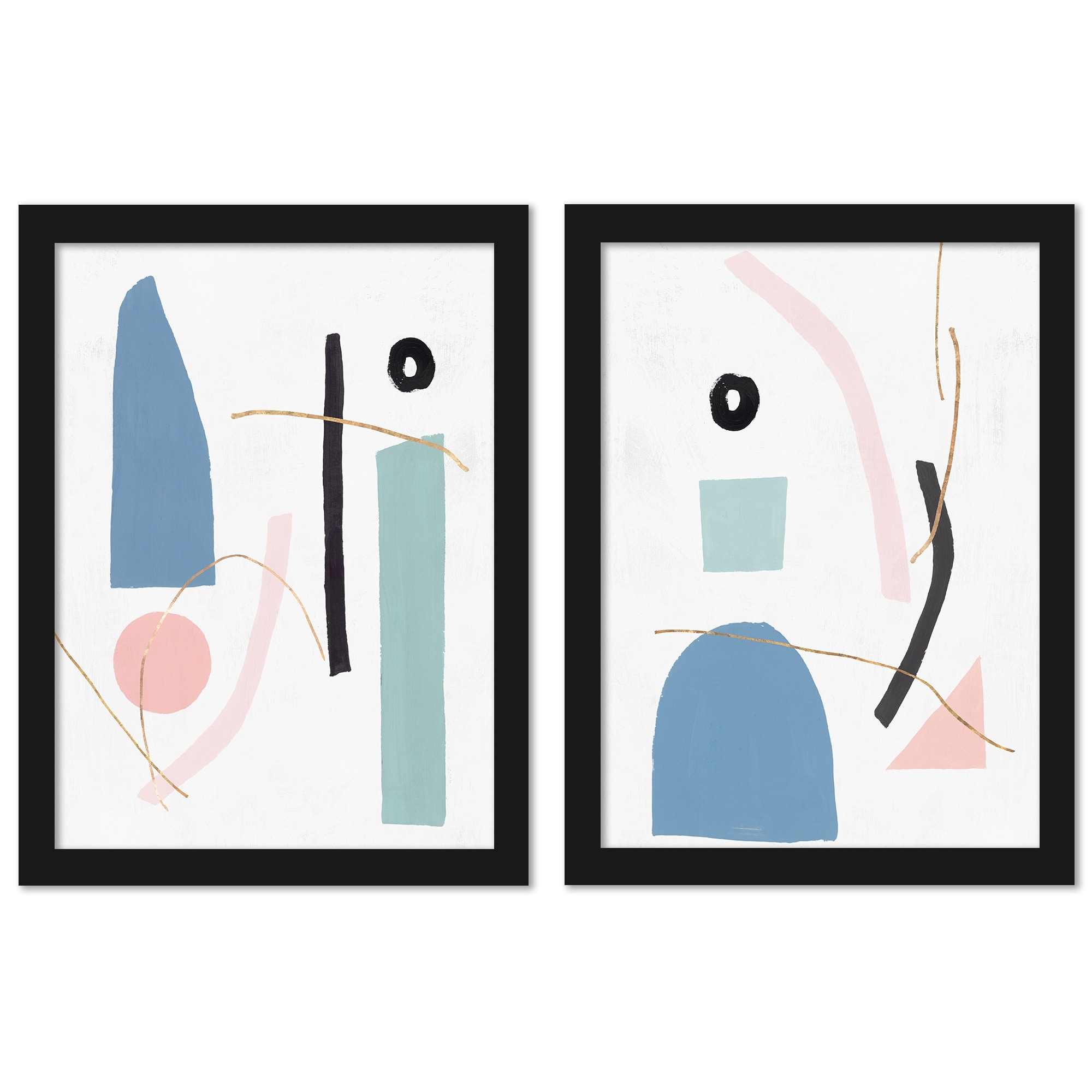 Designart "Minimalistic Pop Art Graphics I" Abstract Framed Art Set of 2 Pieces
