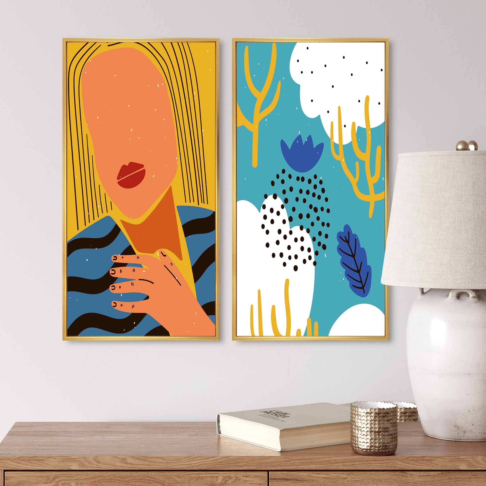 Modern Mid Century by Pop Monica 2 Piece Wrapped Canvas Wall Art Set