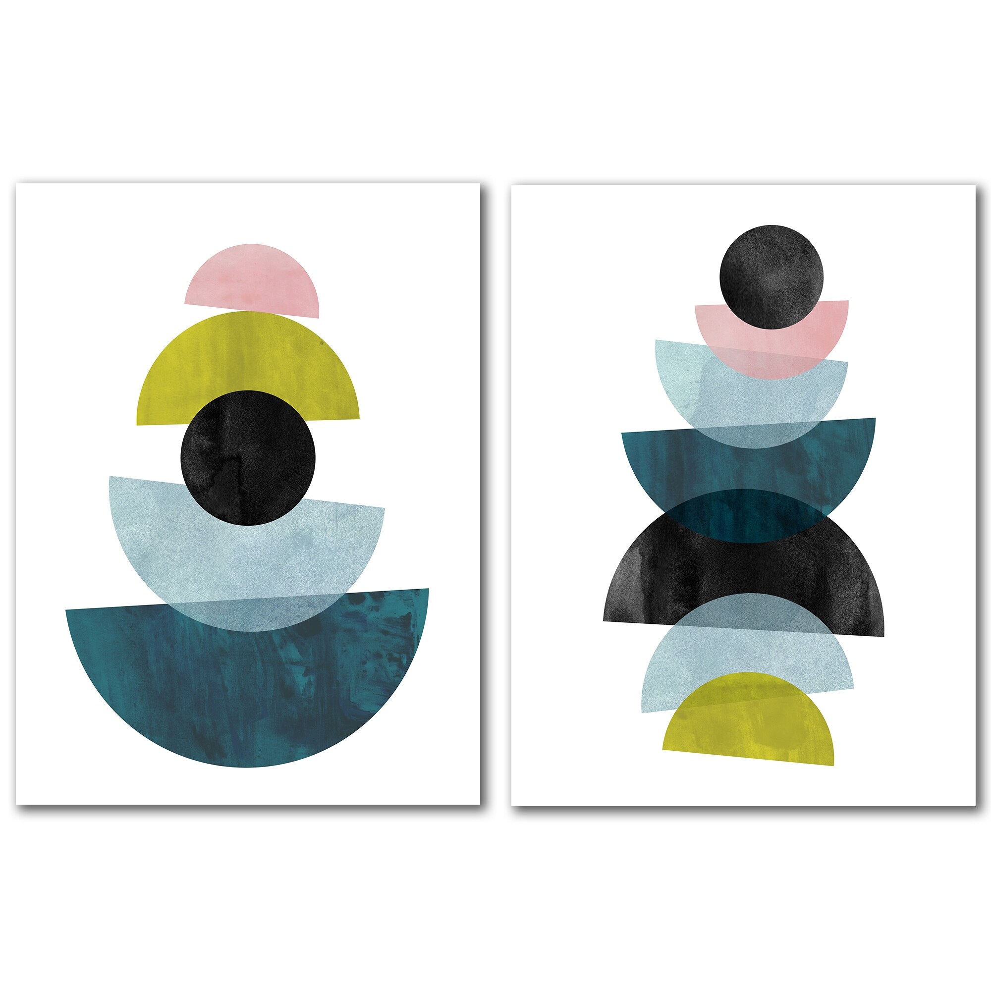 Designart "Minimal Half Moon Abstracts I" Geometric Framed Art Set of 2 Pieces