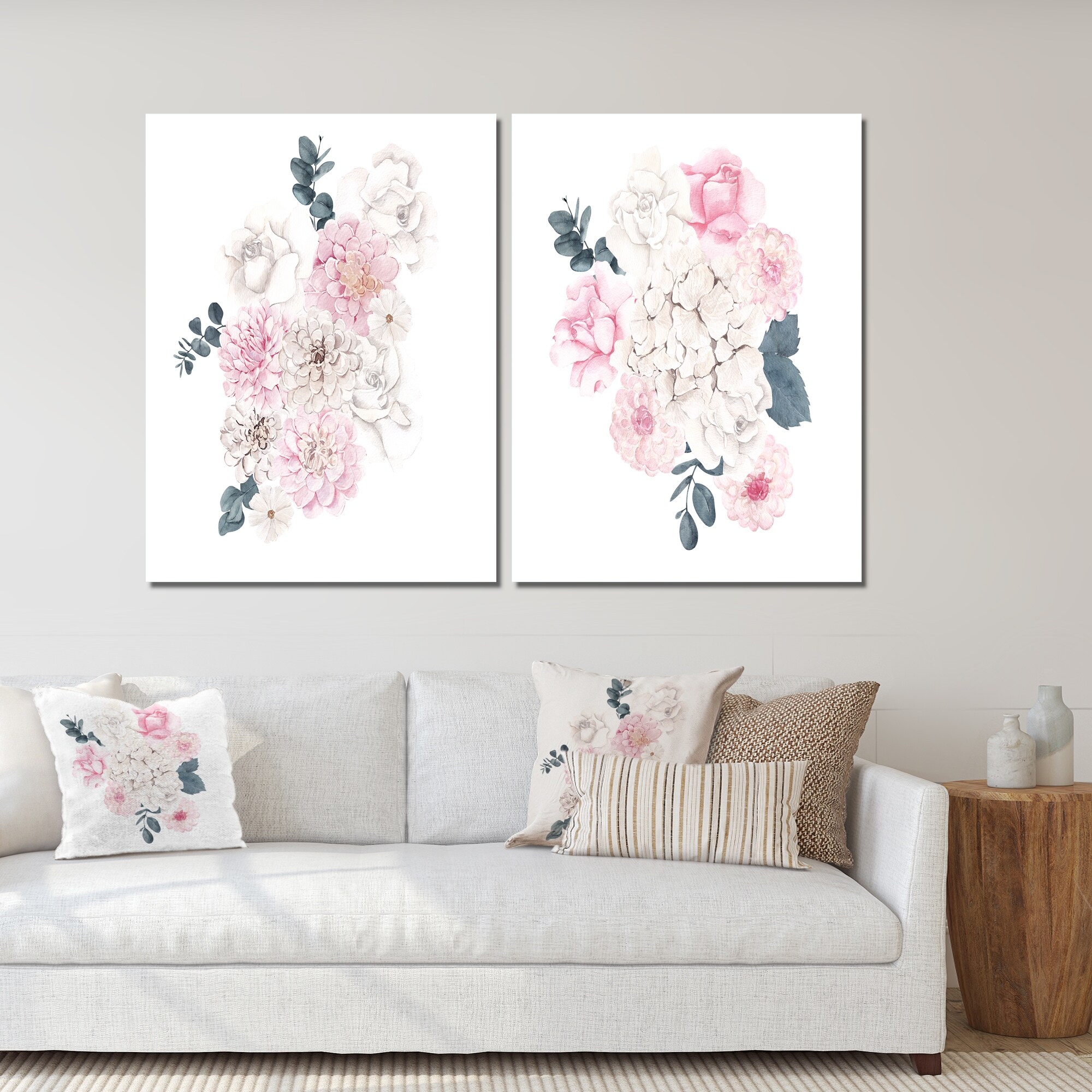Designart 'Winter Bouquet in Pastel Flowers III' Traditional Art Set of 2 Pieces