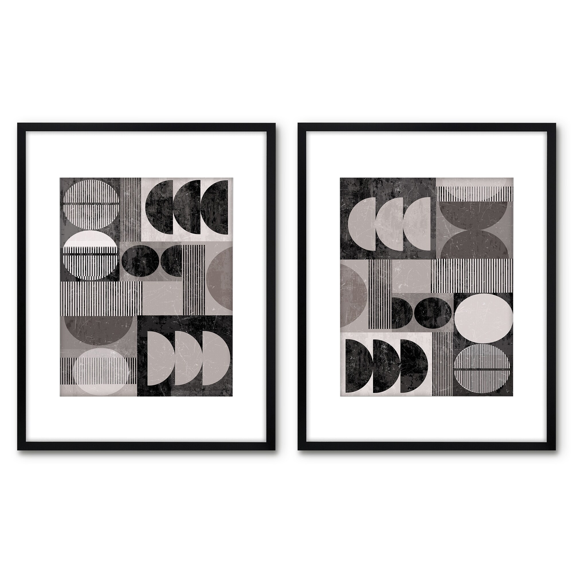 Designart "Monochrome Vintage Minimalistic Geometrics XI" Geometric Framed Art Set of 2 Pieces