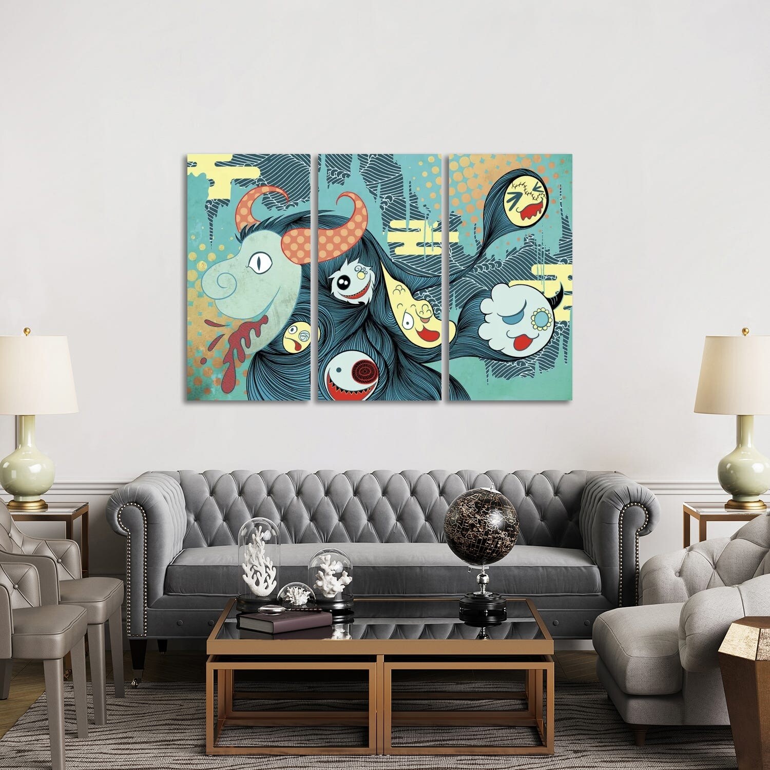 iCanvas "Bad Hair Don't Care (Scottish Highland Cow)" by Sillier Than Sally 3-Piece Canvas Wall Art Set