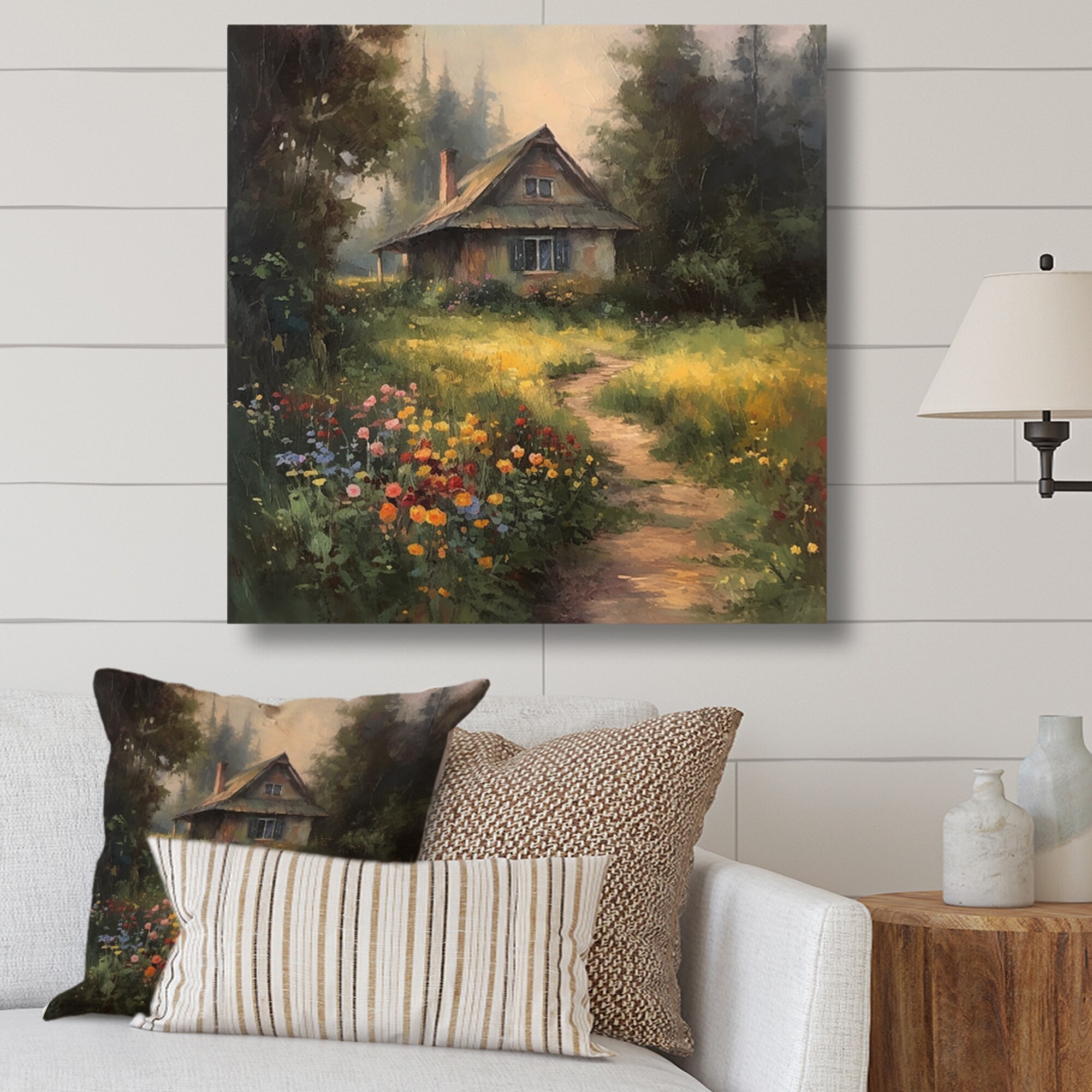 Designart "Quaint Cottage And Garden Oasis I" Cottage Landscape Canvas Art Print