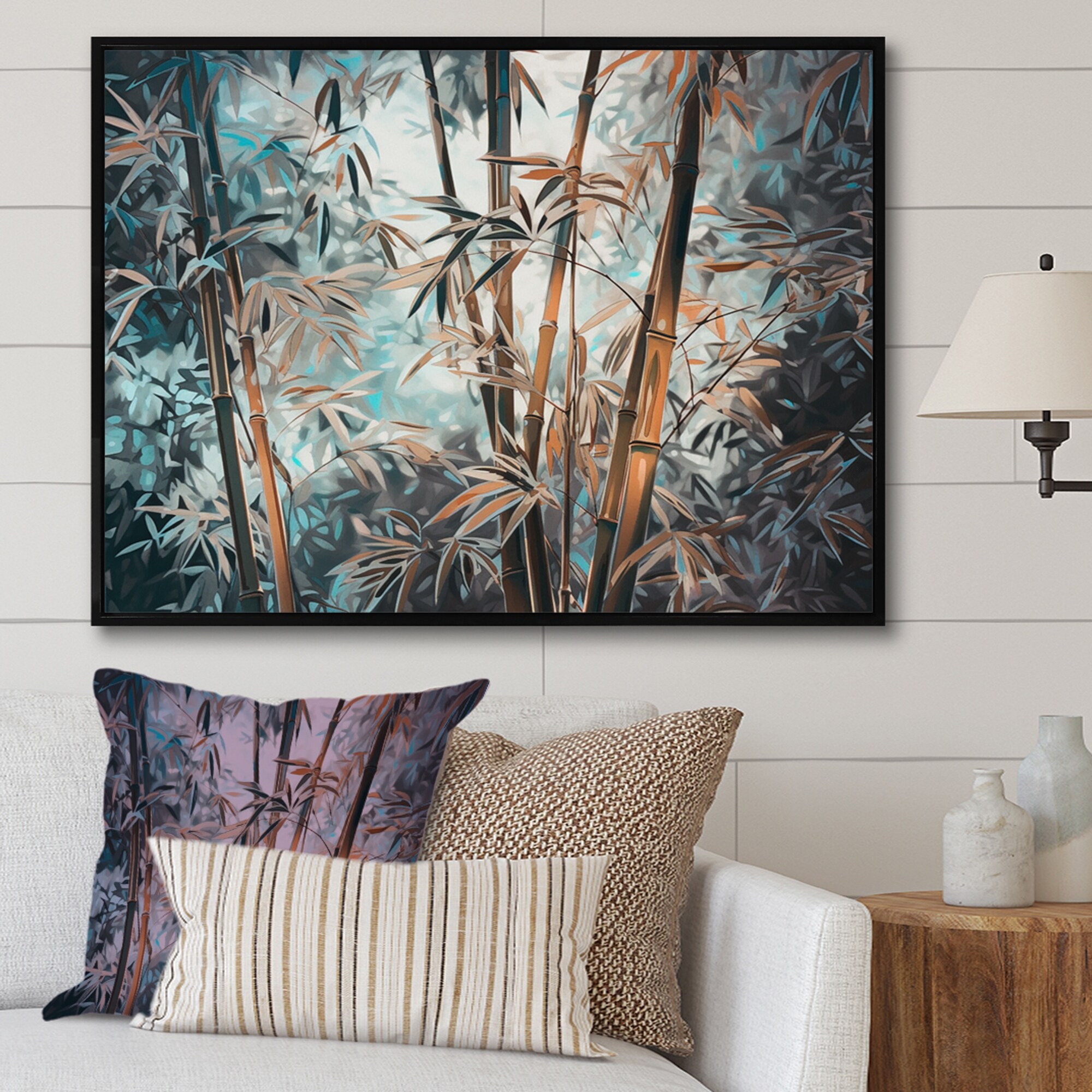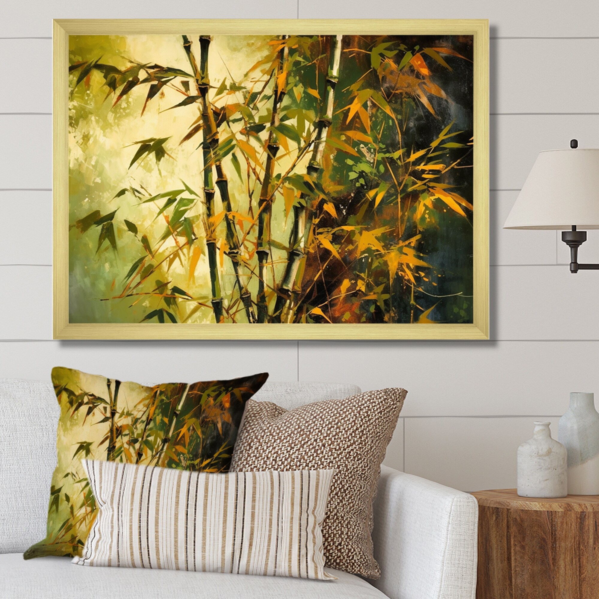 Designart "Green Floral Bamboo Oasis I" Floral Framed Canvas Art Print
