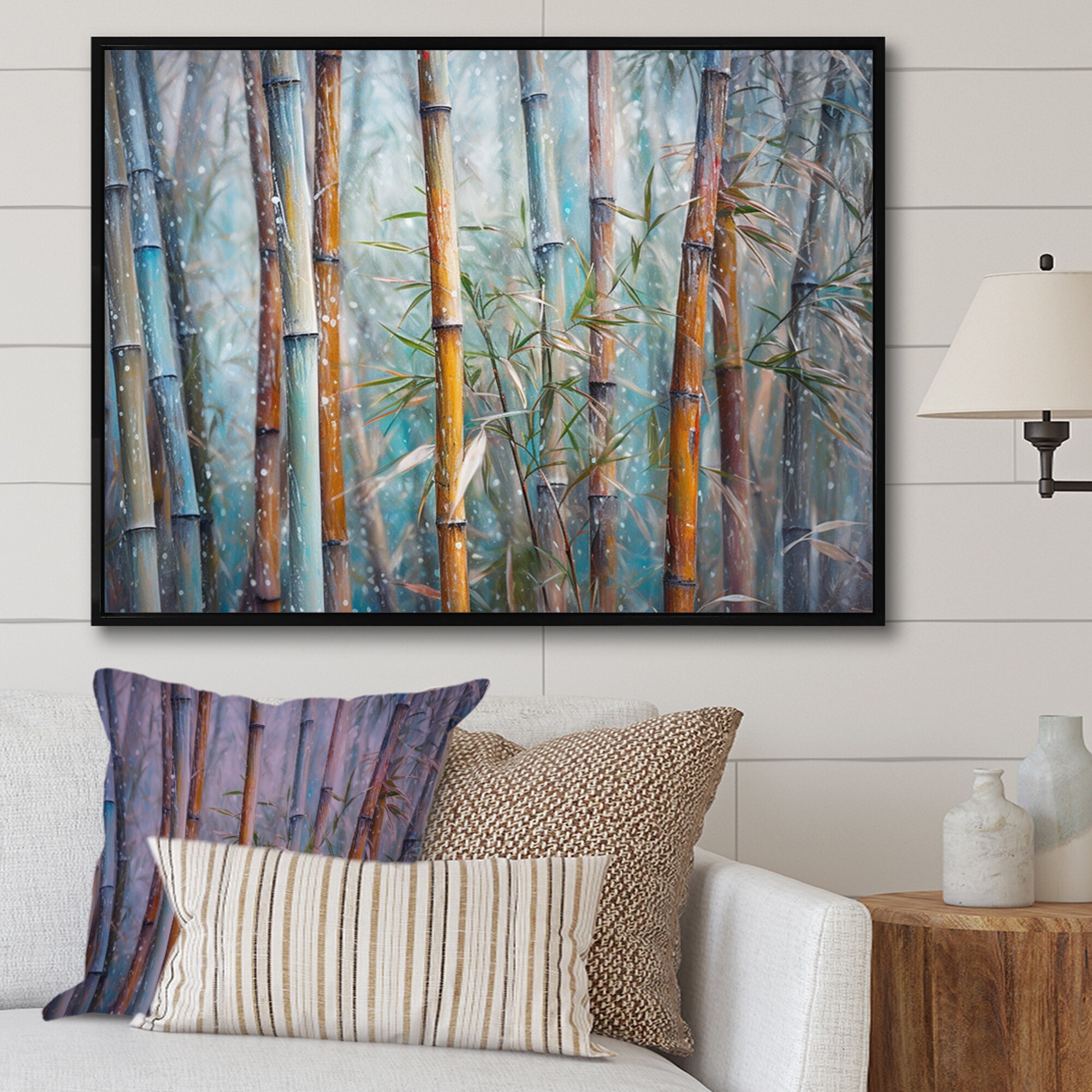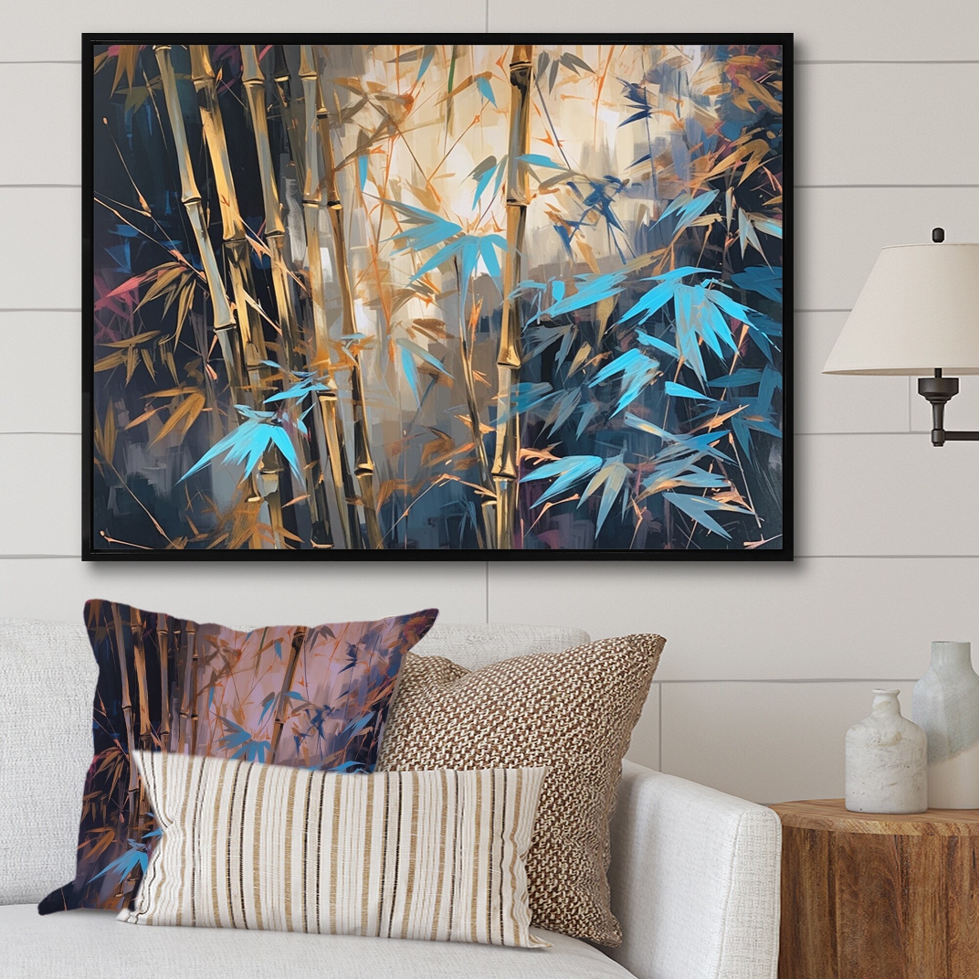 Designart "Green Floral Bamboo Oasis Ii" Floral Framed Canvas Art Print