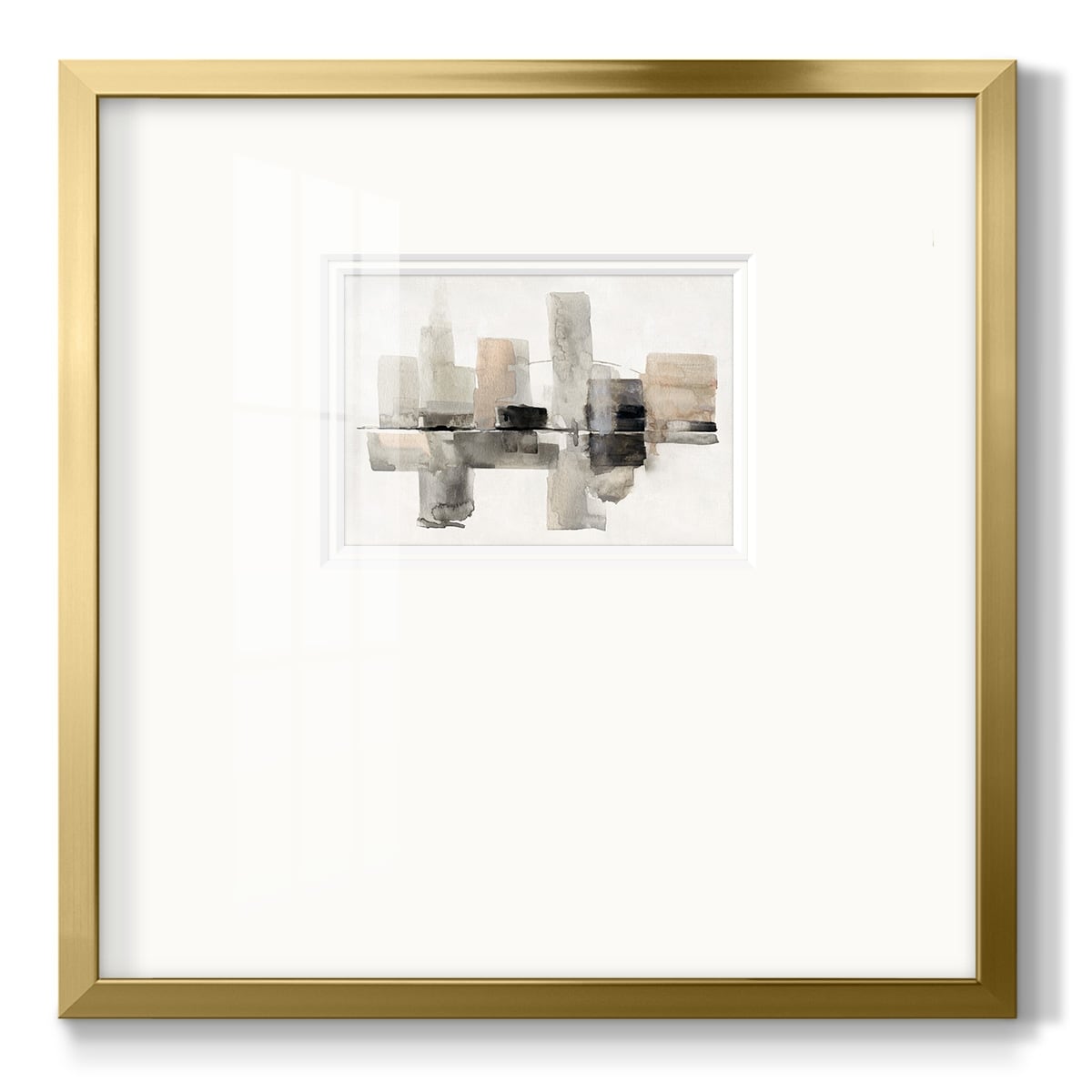 Designart "Grey Orange Mid Century Minimalist Oasis II" Abstract Collages Framed Wall Art Living Room