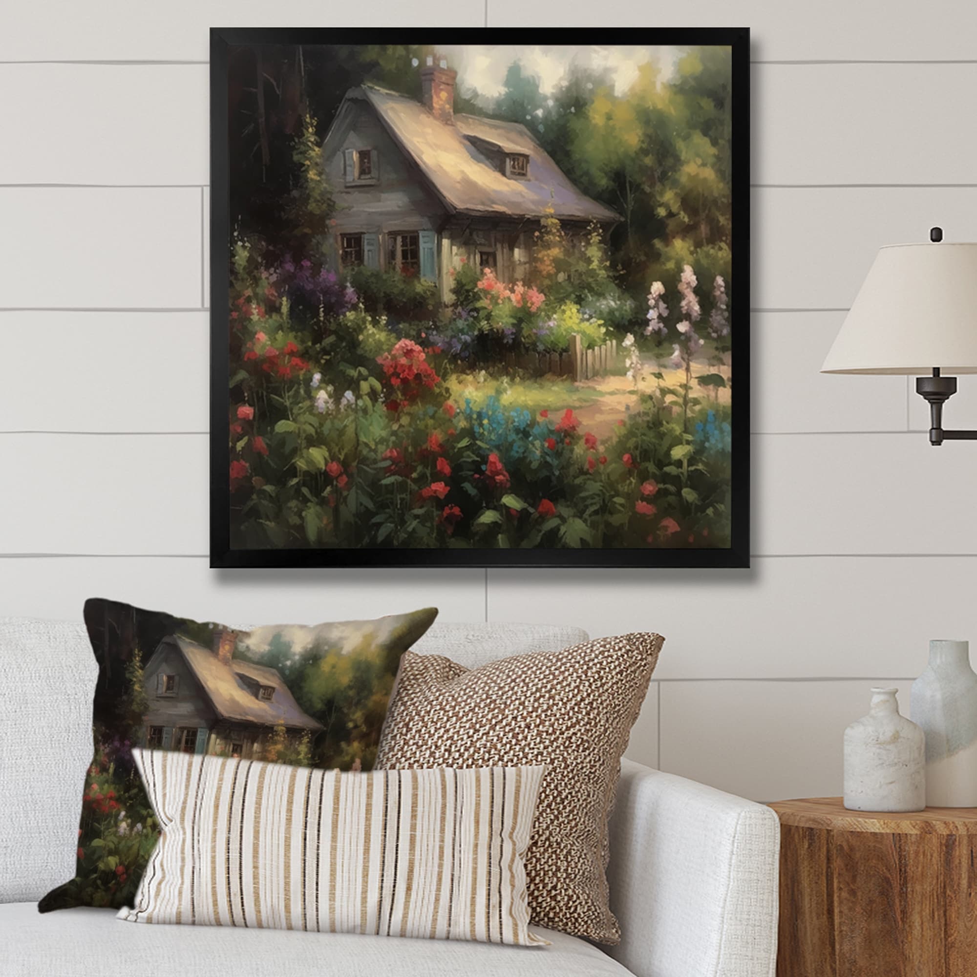 Designart "Quaint Cottage And Garden Oasis Iv" Cottage Landscape Framed Canvas Print