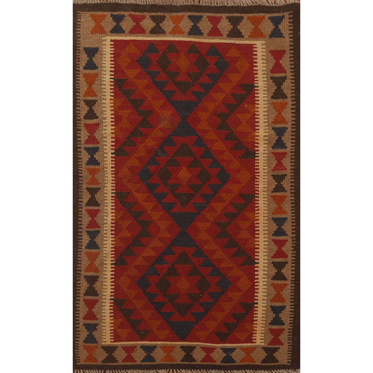 Reversible Kilim Rug Hand-woven Geometric Wool Carpet - 3'3" x 5'1"