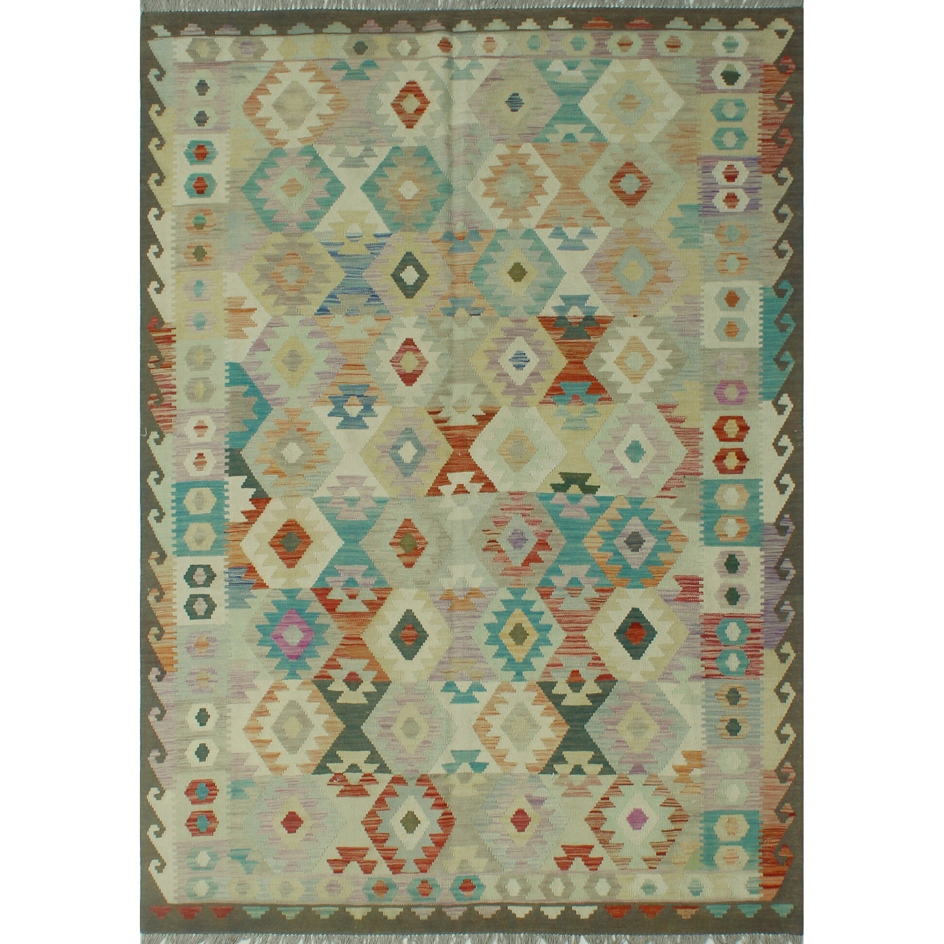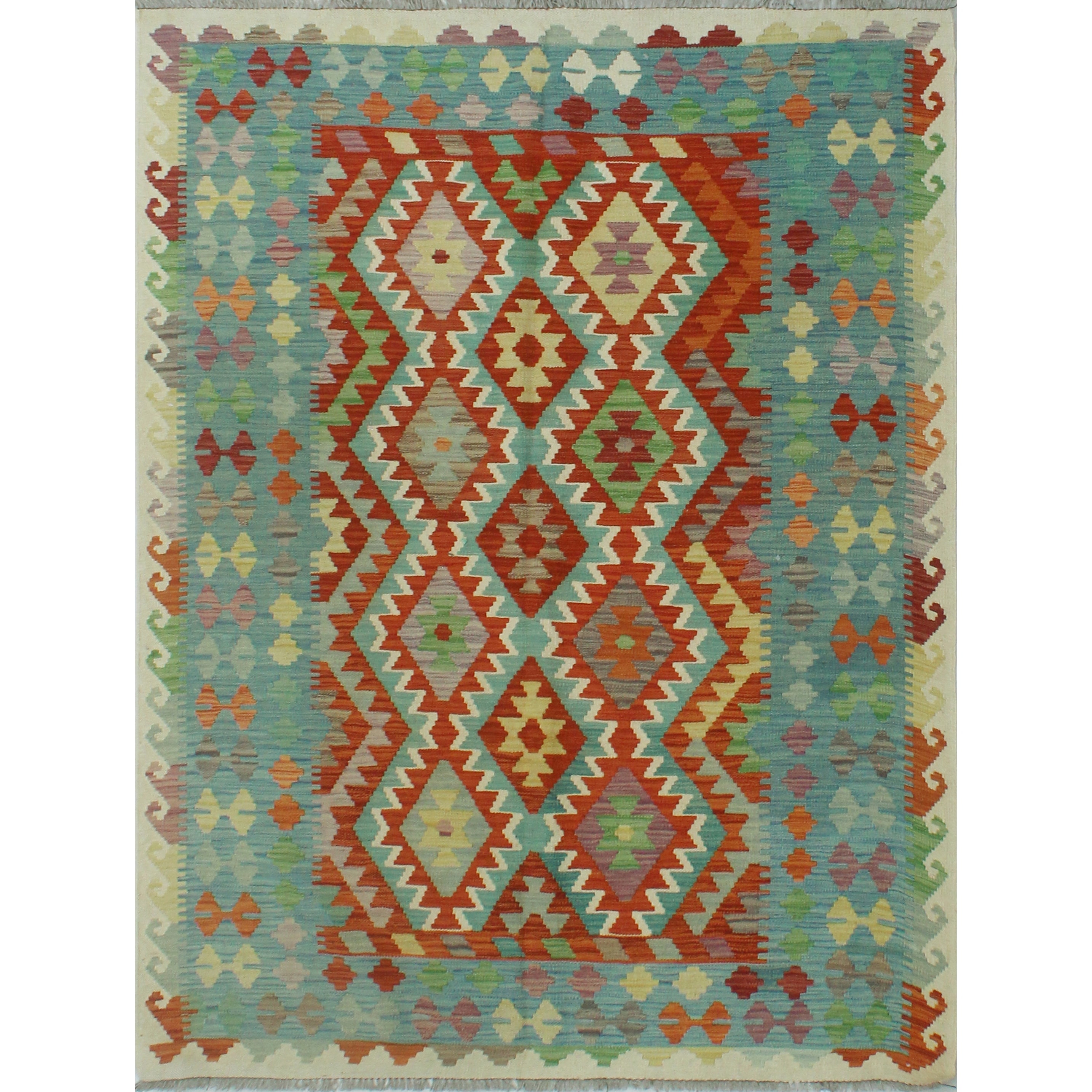 Hand-Woven Sangat Kilim Elvin Lt. Green/Rust Rug - 5'1" x 6'3"