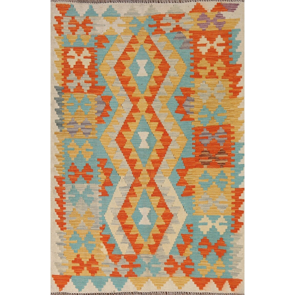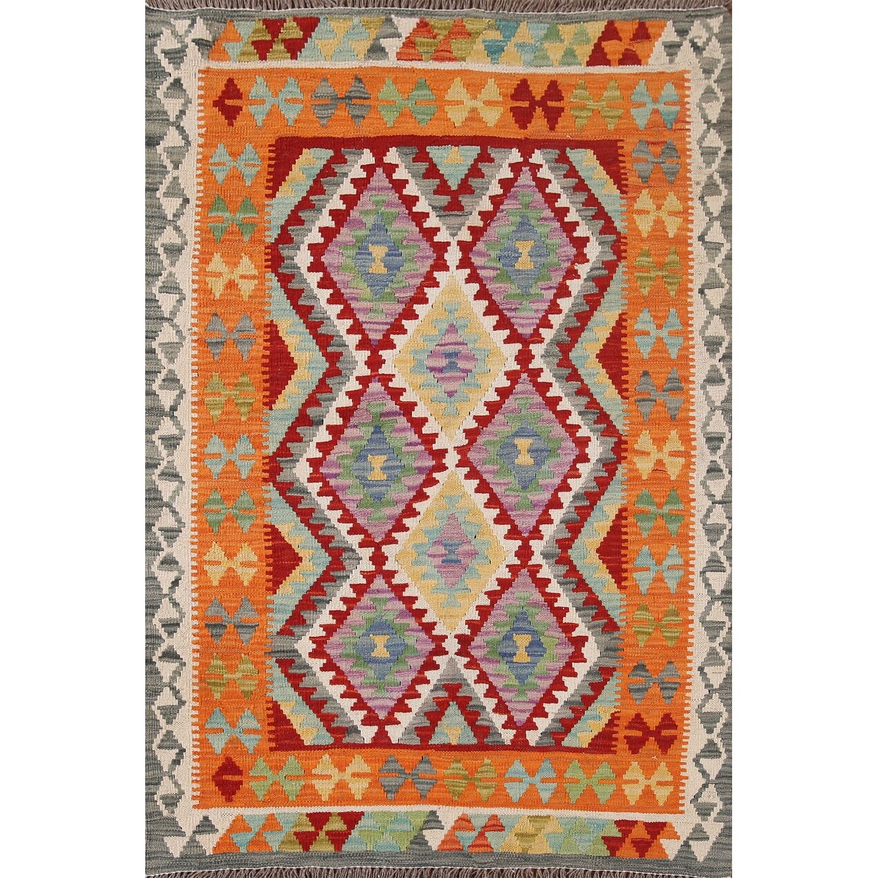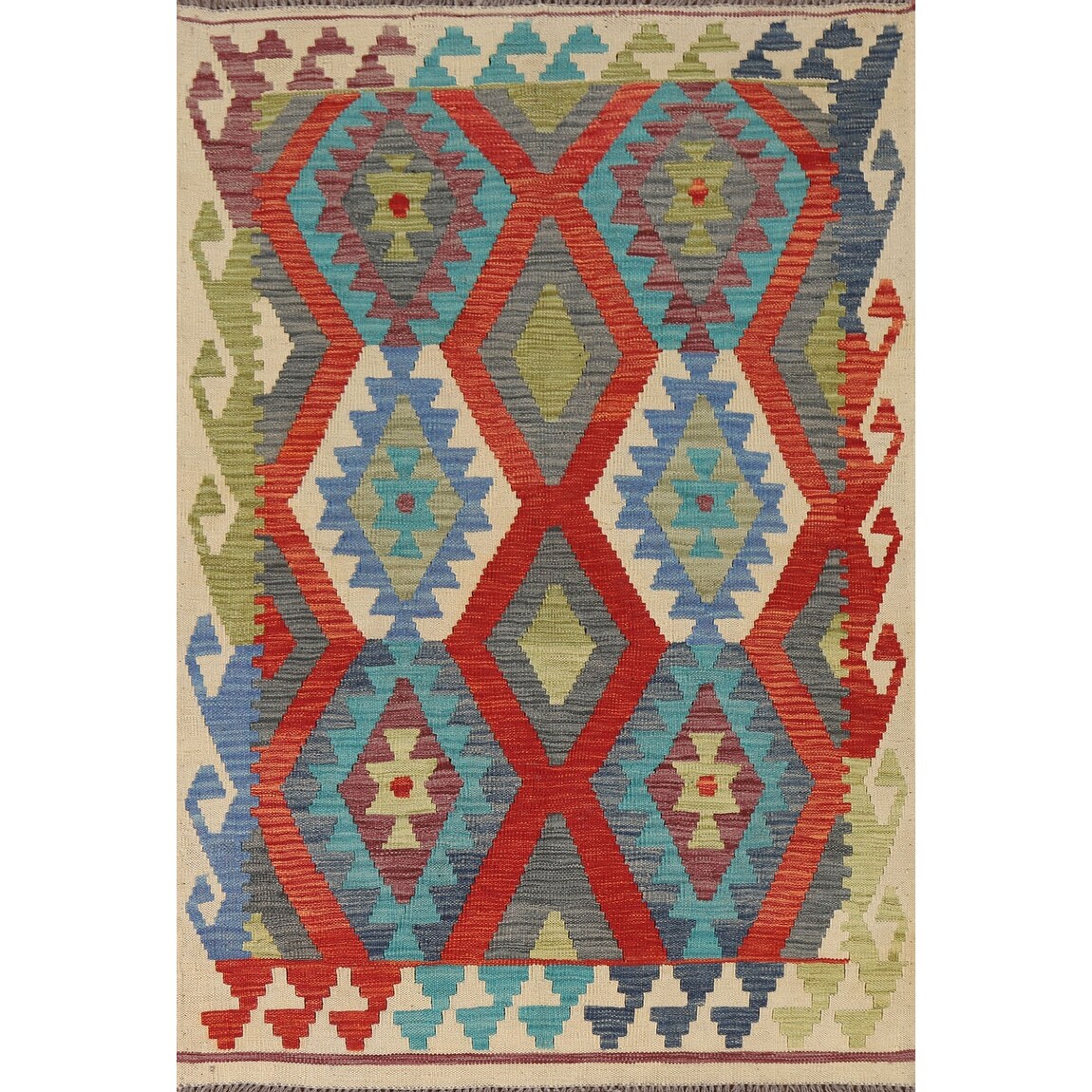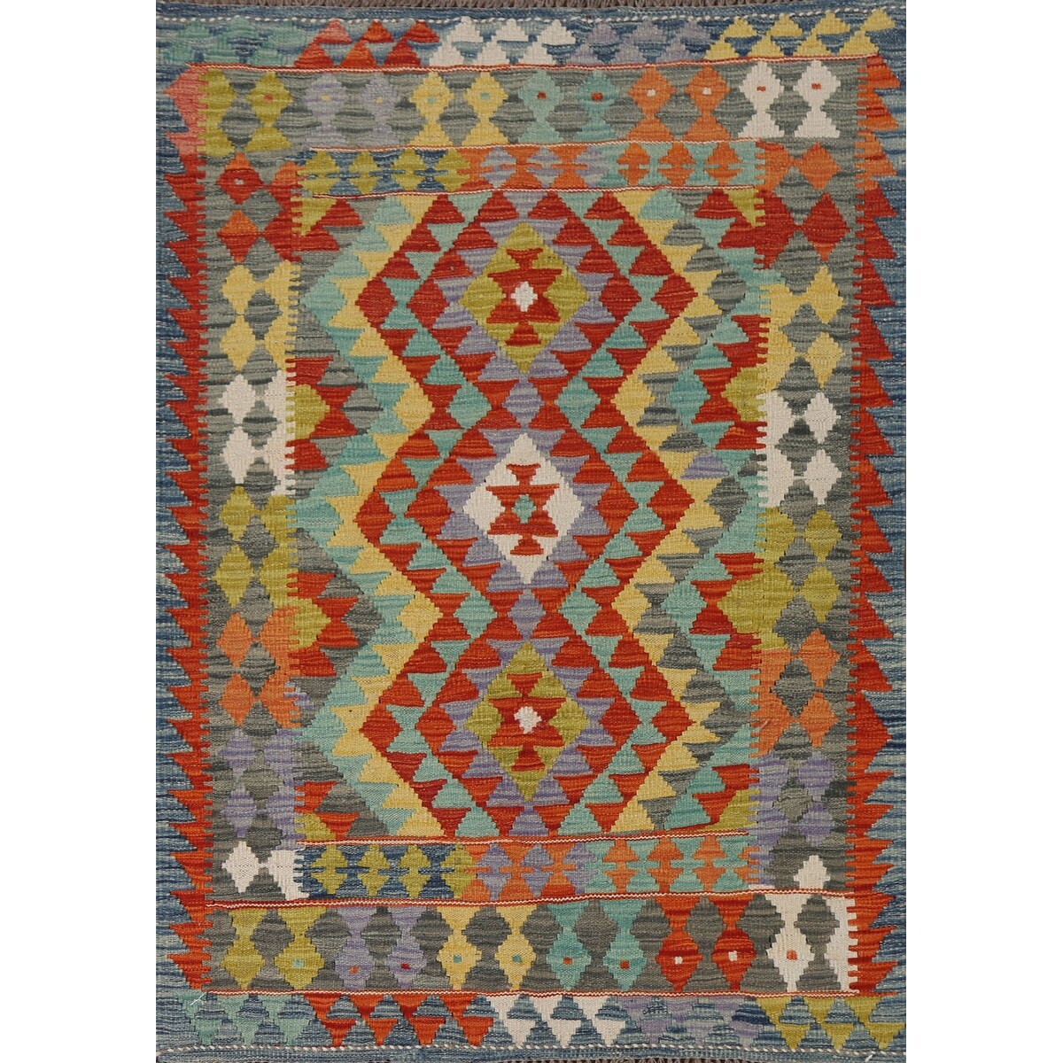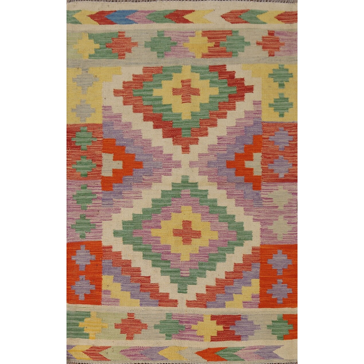 Flatweave Geometric Reversible Kilim Rug Multi-Color Wool Carpet - 3'3"x 5'1"