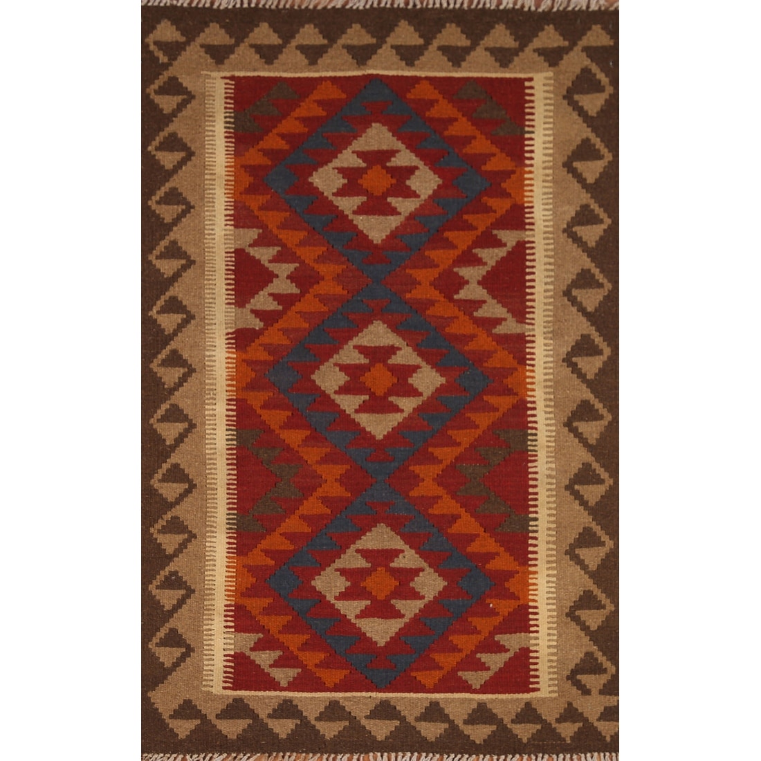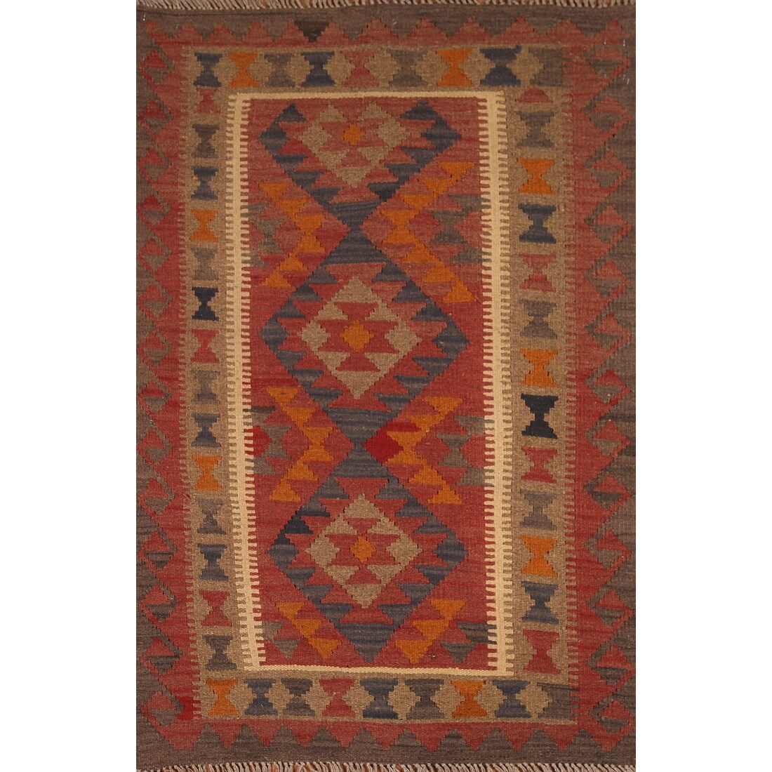 Earth Tone Kilim Oriental Accent Rug Flatweave Wool Carpet - 3'1"x 5'1"