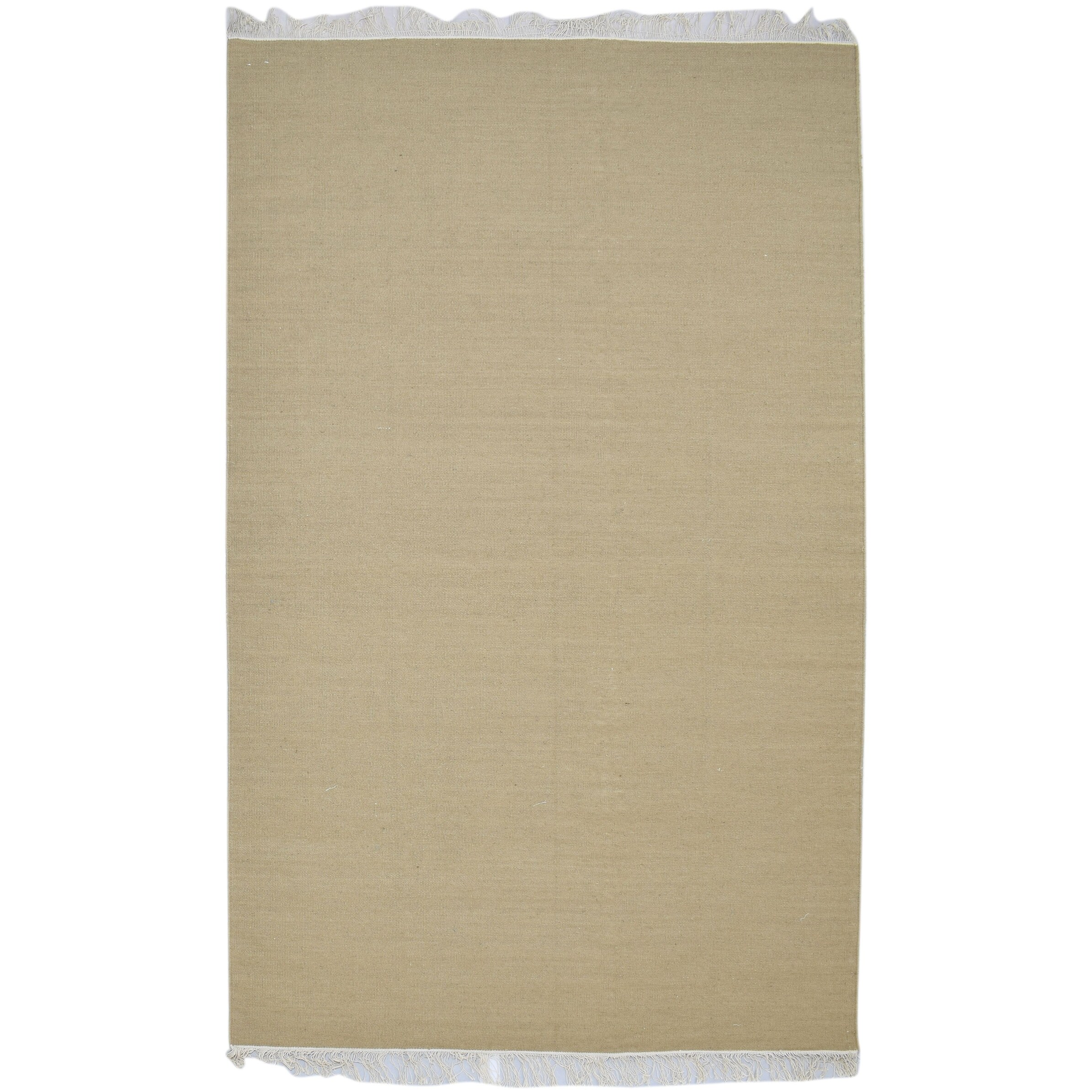 One of a Kind Flatweave Modern & Contemporary 5' x 8' Solid Wool Beige Rug - 5'1"x8'2"