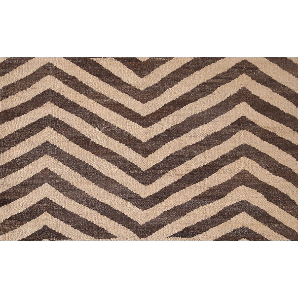 Reversible Kilim Brown Area Rug Hand-woven Wool Carpet - 3'4" x 5'1"