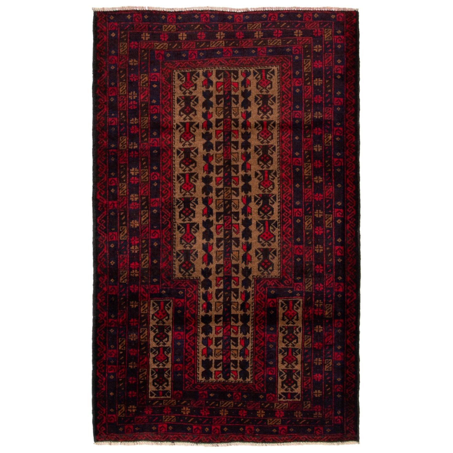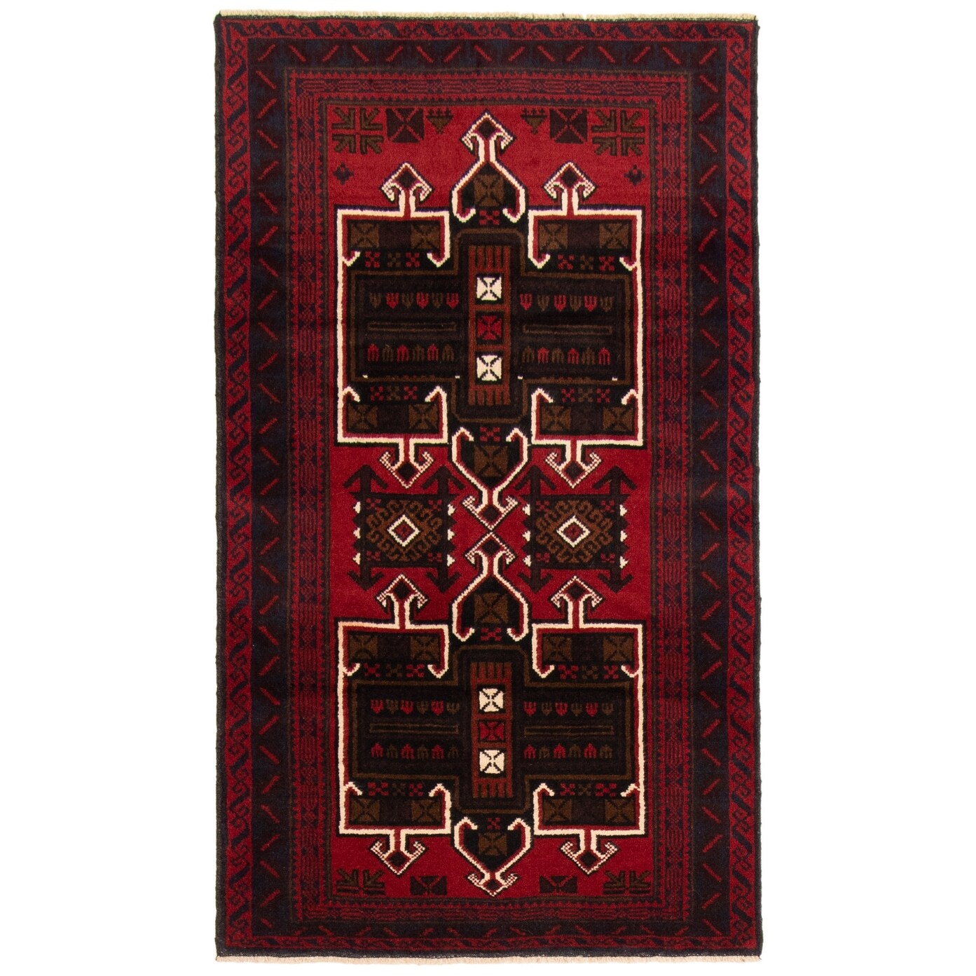 ECARPETGALLERY Hand-knotted Baluch Dark Red Wool Rug - 3'1 x 5'1