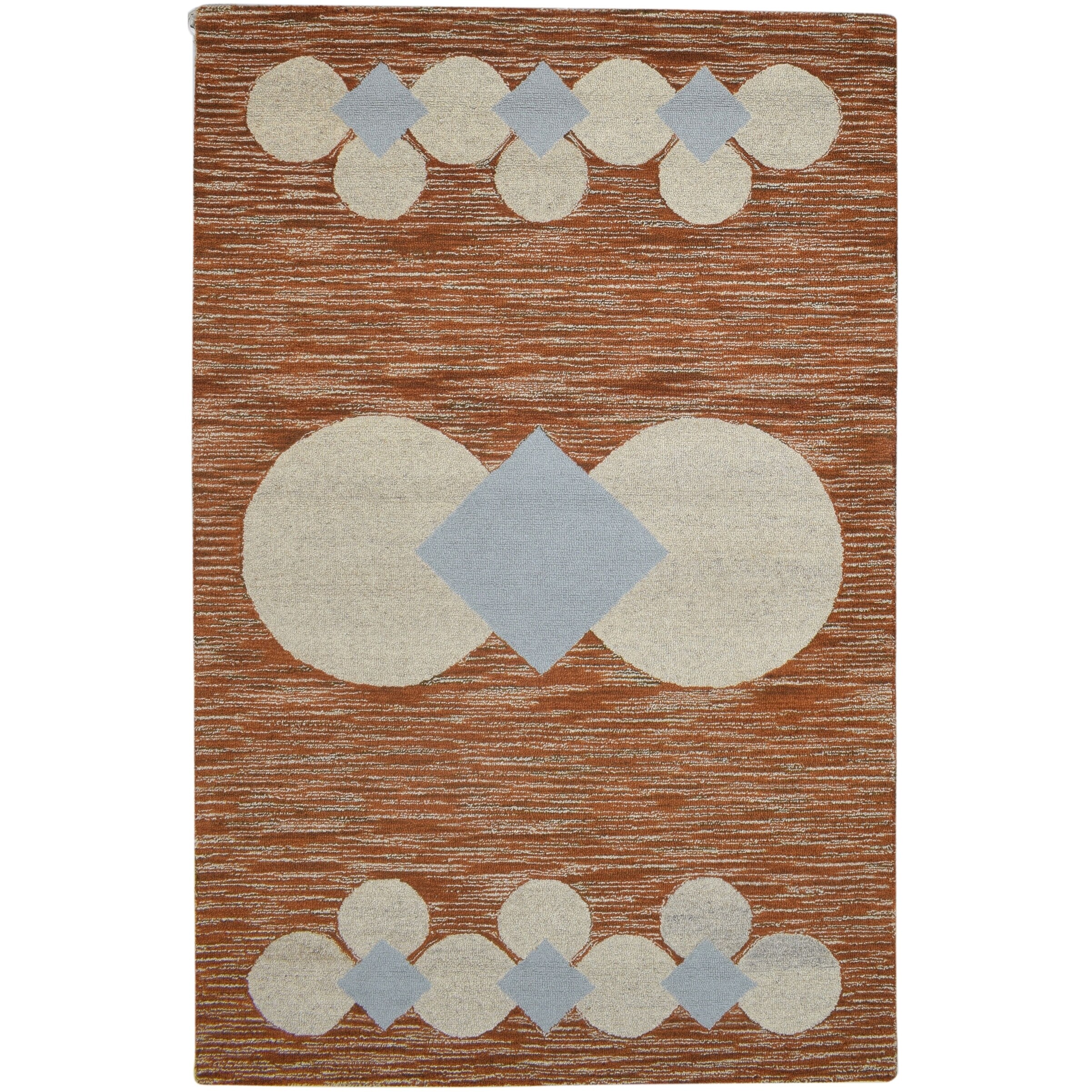 One of a Kind Hand-Tufted Modern & Contemporary 5' x 8' Geometric Wool Red Rug - 5'1"x8'0"