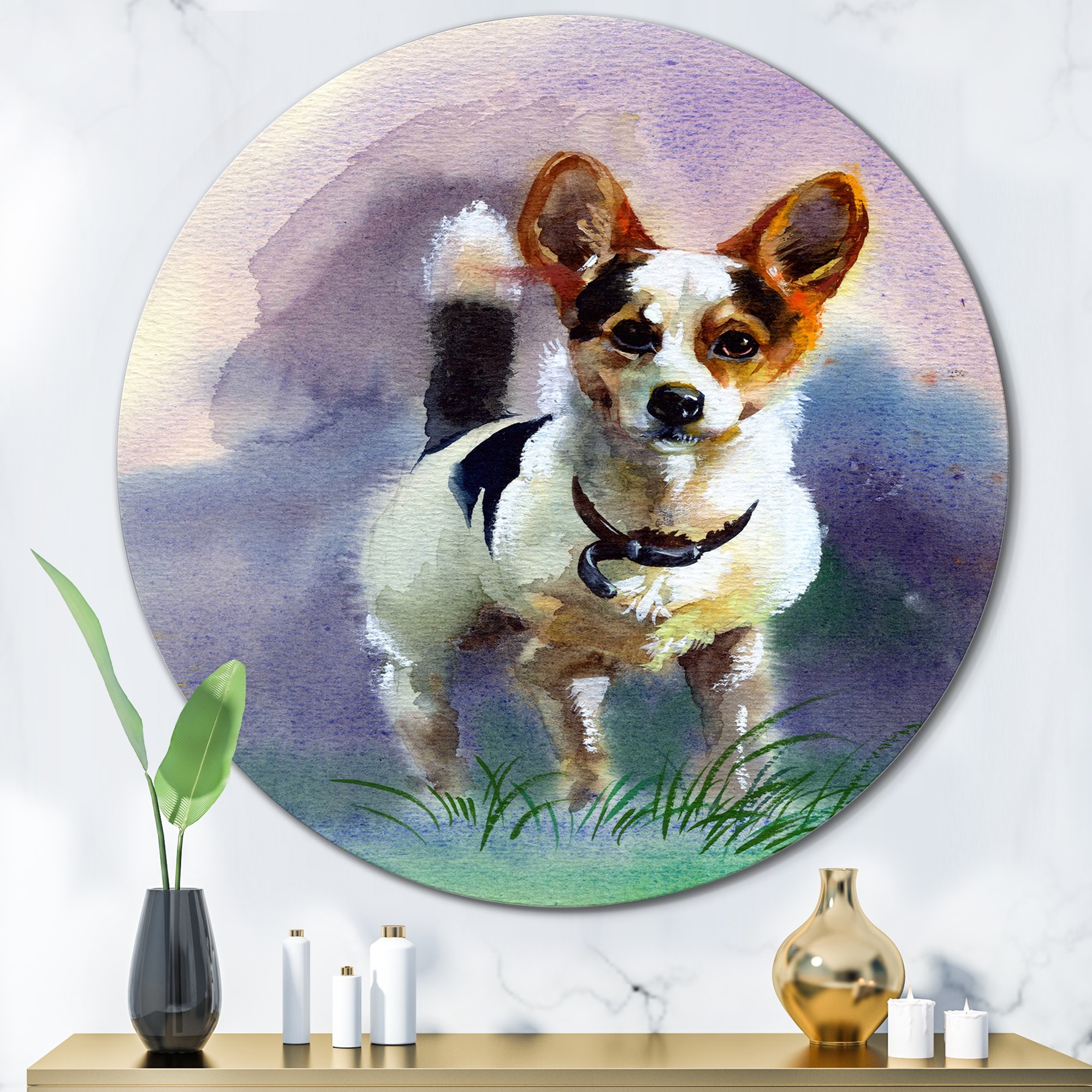 Designart 'Portrait Of a Little White Dog' Traditional Metal Circle Wall Art