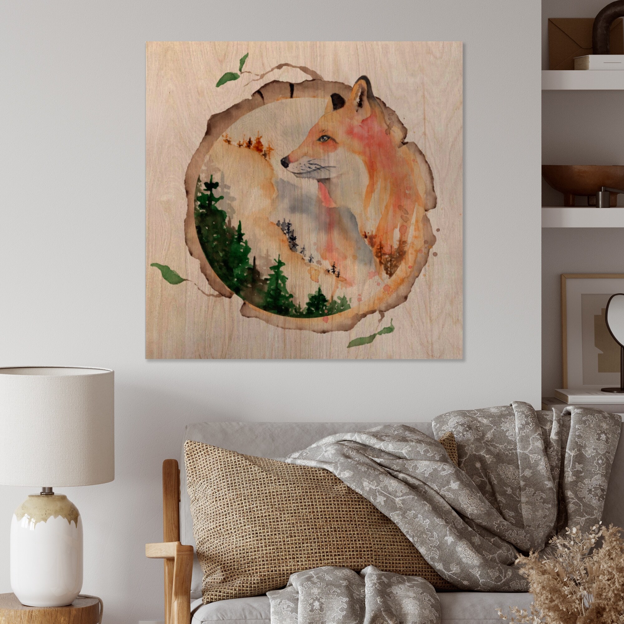 Designart 'Portrait Of a Young Fox' Traditional Wood Wall Art Décor - Natural Pine Wood