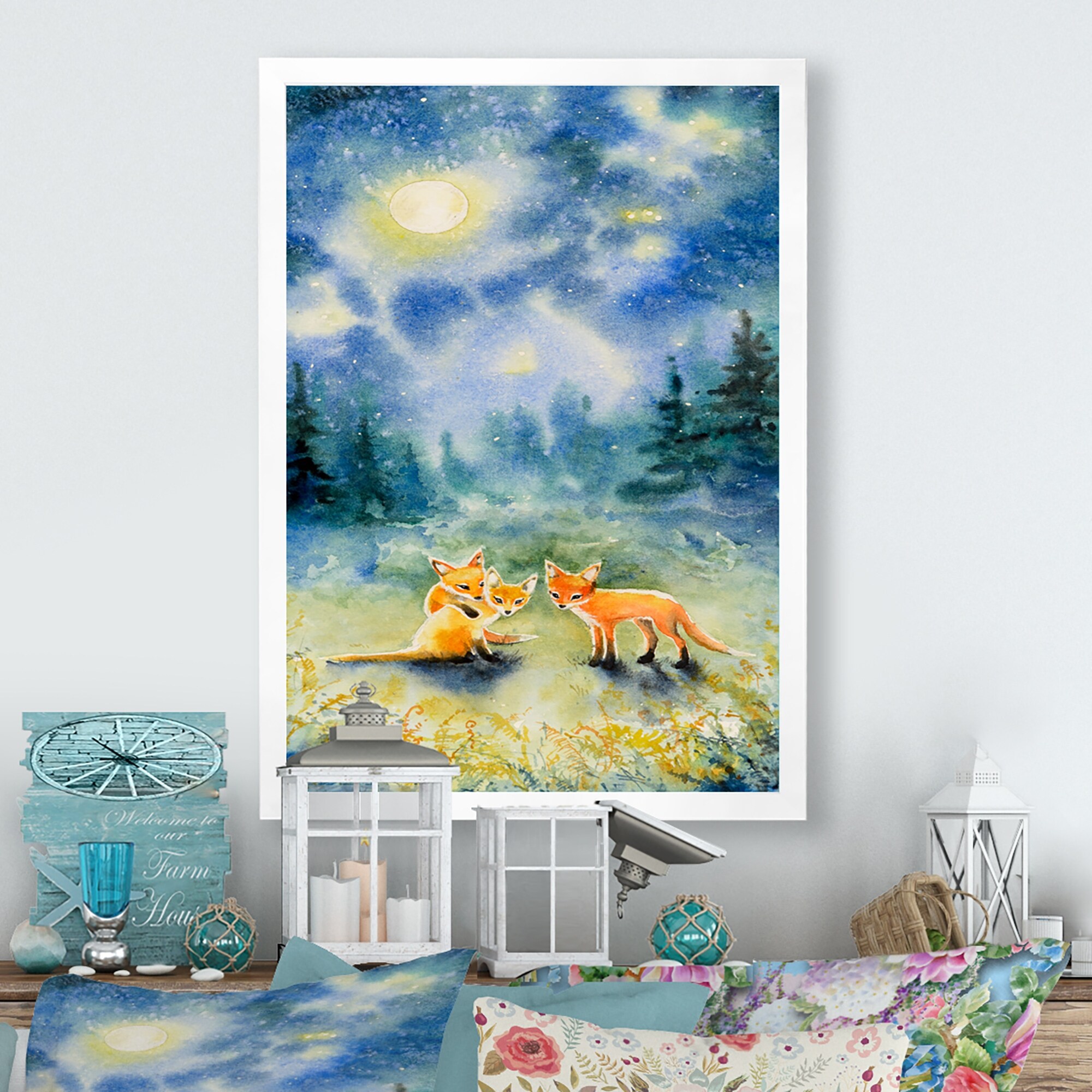 Designart "Fox Over A Night Sky" Children's Art Framed Art Print