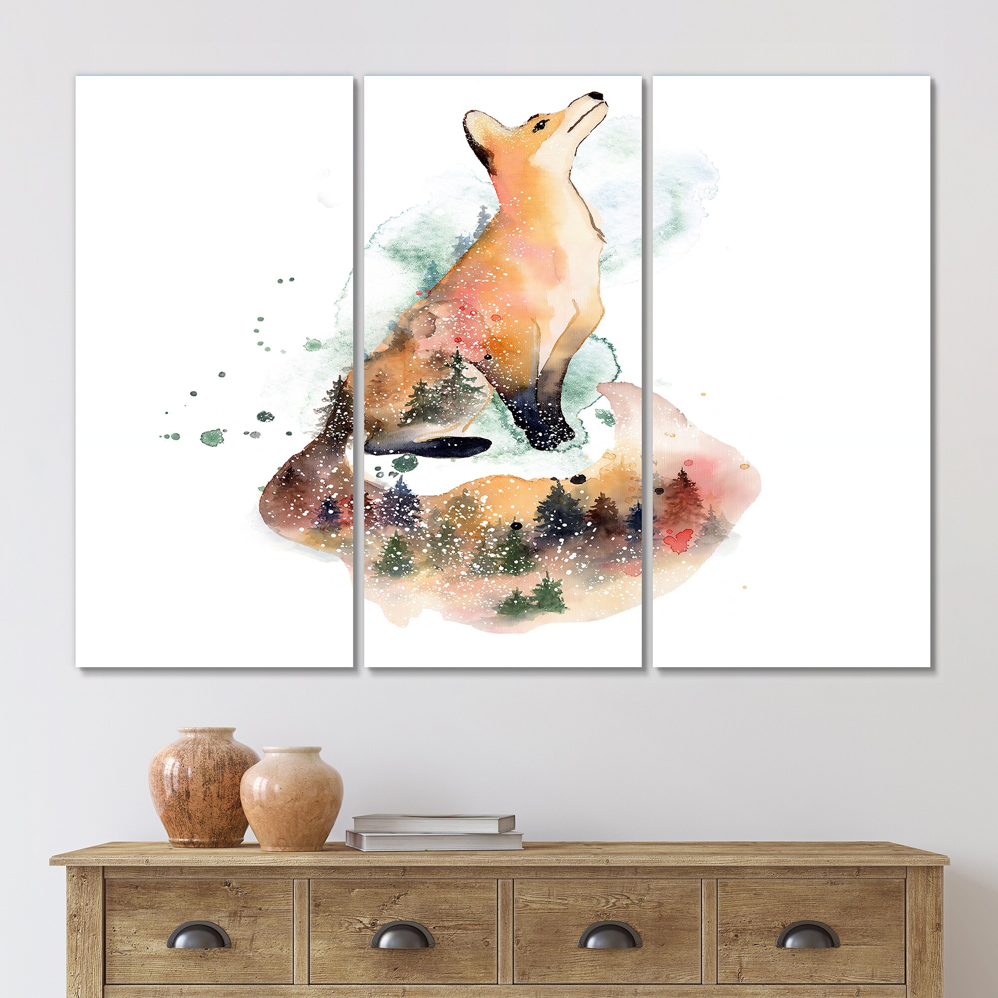 Designart 'Pine Wood Fox in Winter Landscape' Traditional Wood Wall Art Panels - Natural Pine Wood