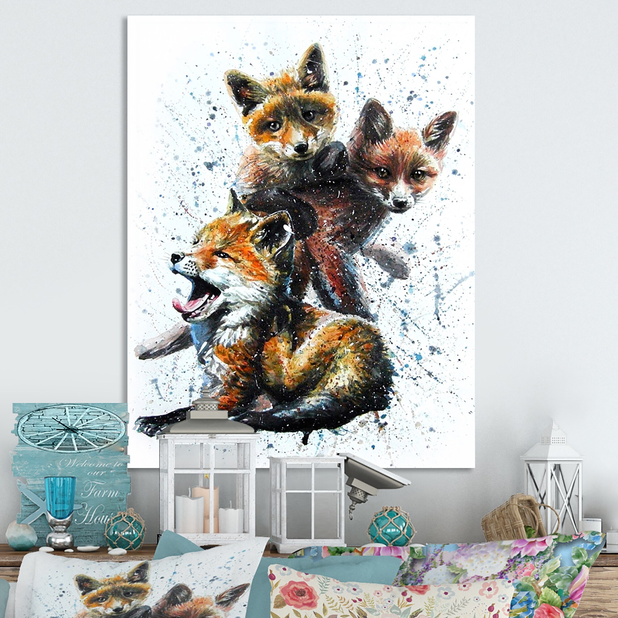 Designart "Little Foxes Painting" Traditional Canvas artwork