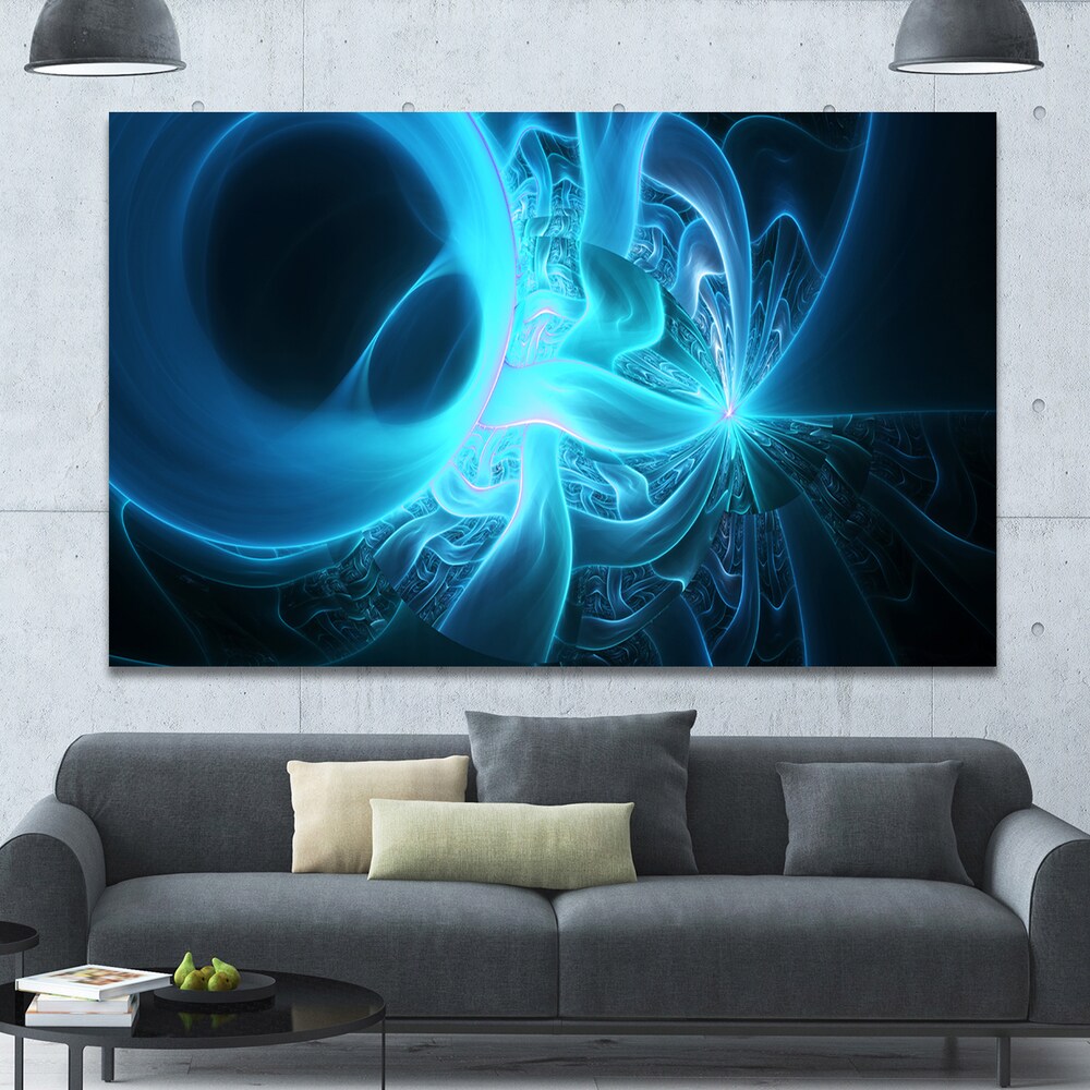 Designart "Shining Bright Blue on Black" Abstract Wall Art Canvas
