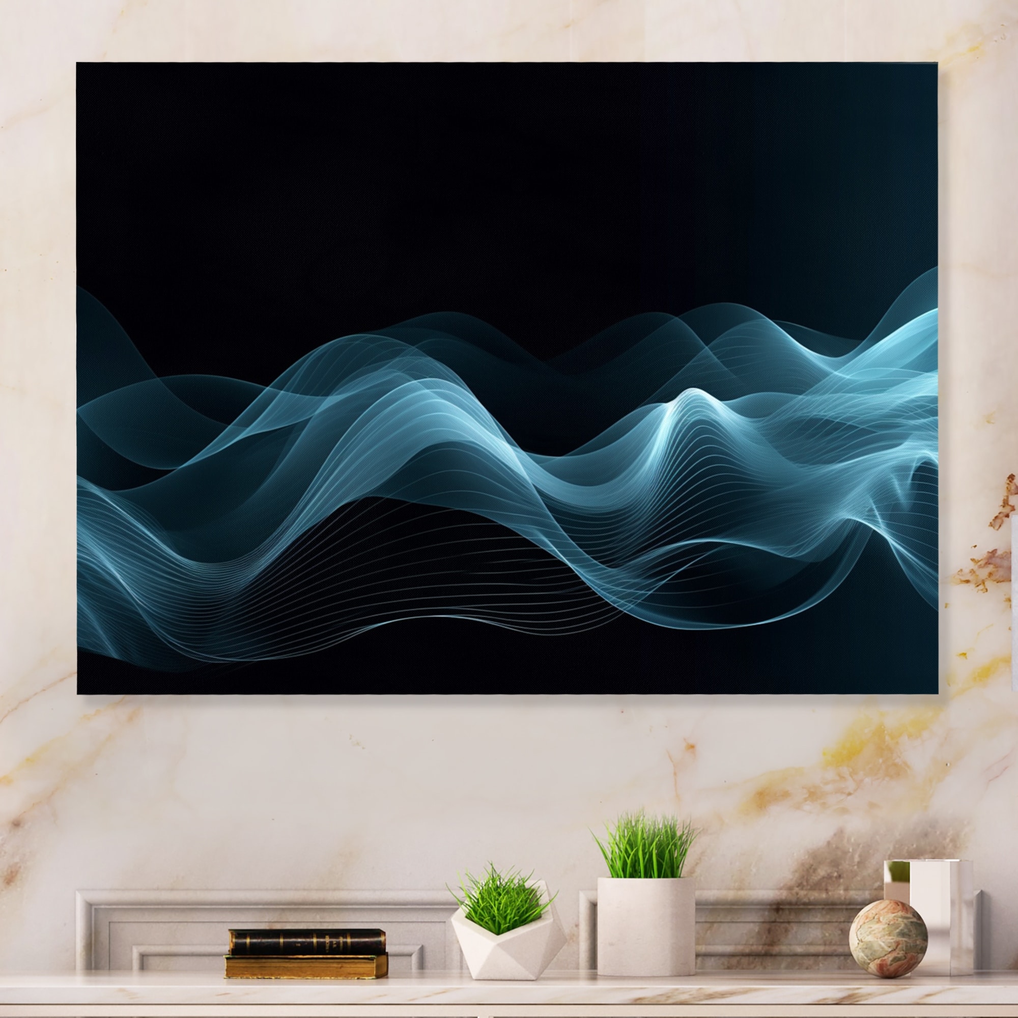 Designart "Blue Black Contemplative Abstraction II" Modern Waves Metal Wall Art