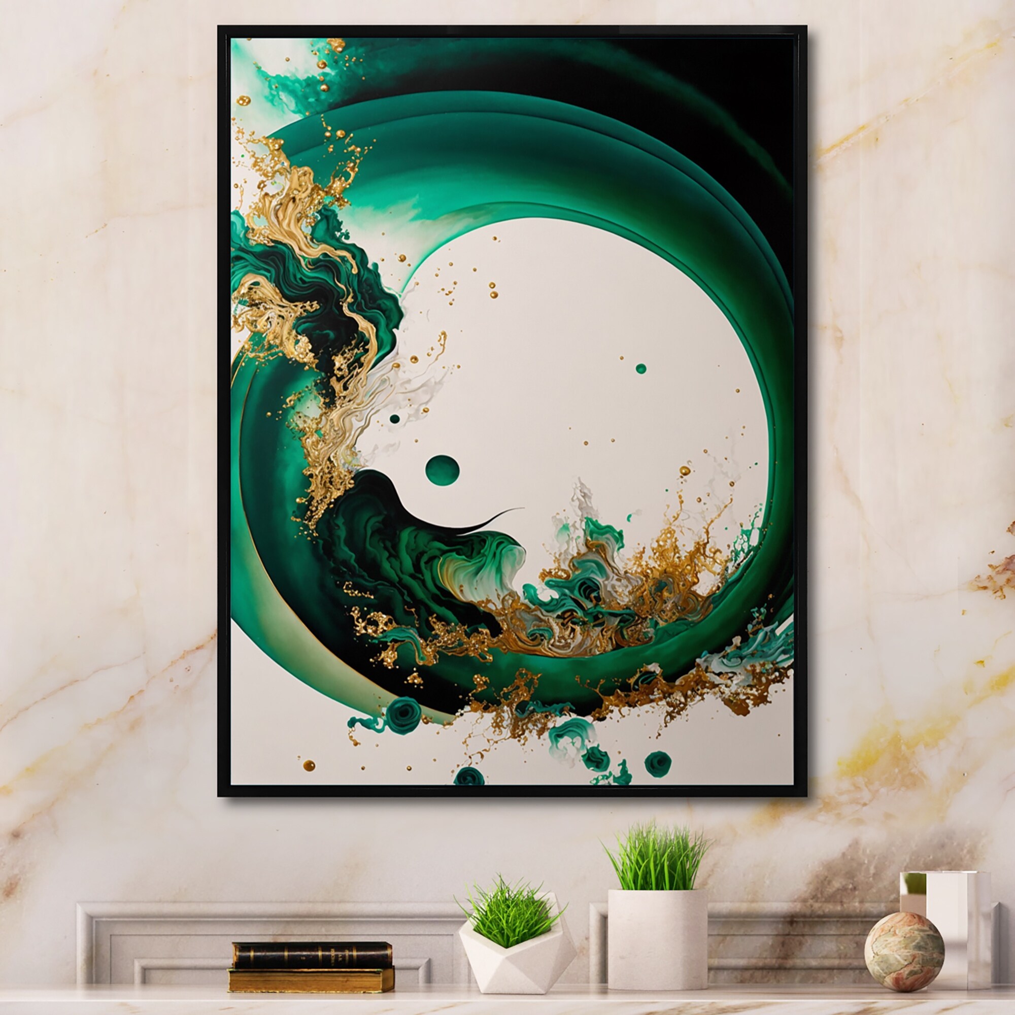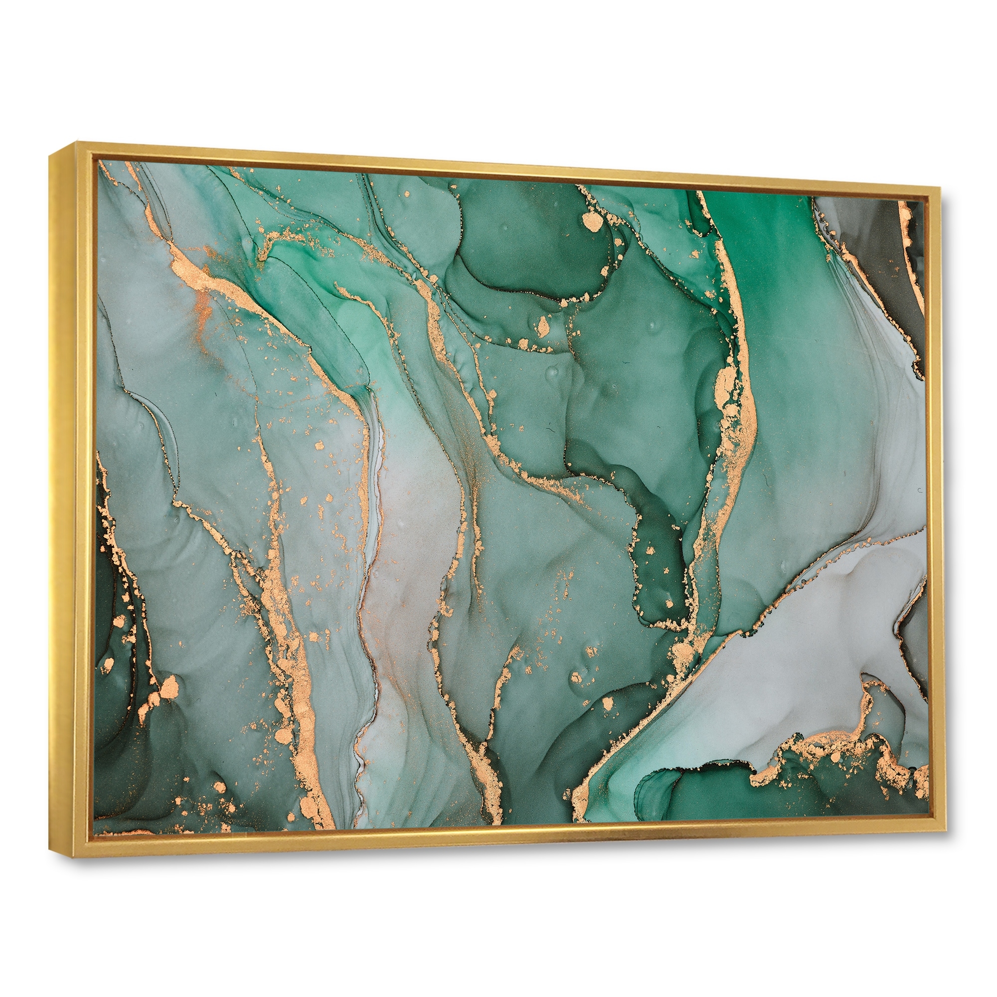 Designart "Green Luxury Abstract Fluid Art V" Modern Framed Canvas Wall Art Print