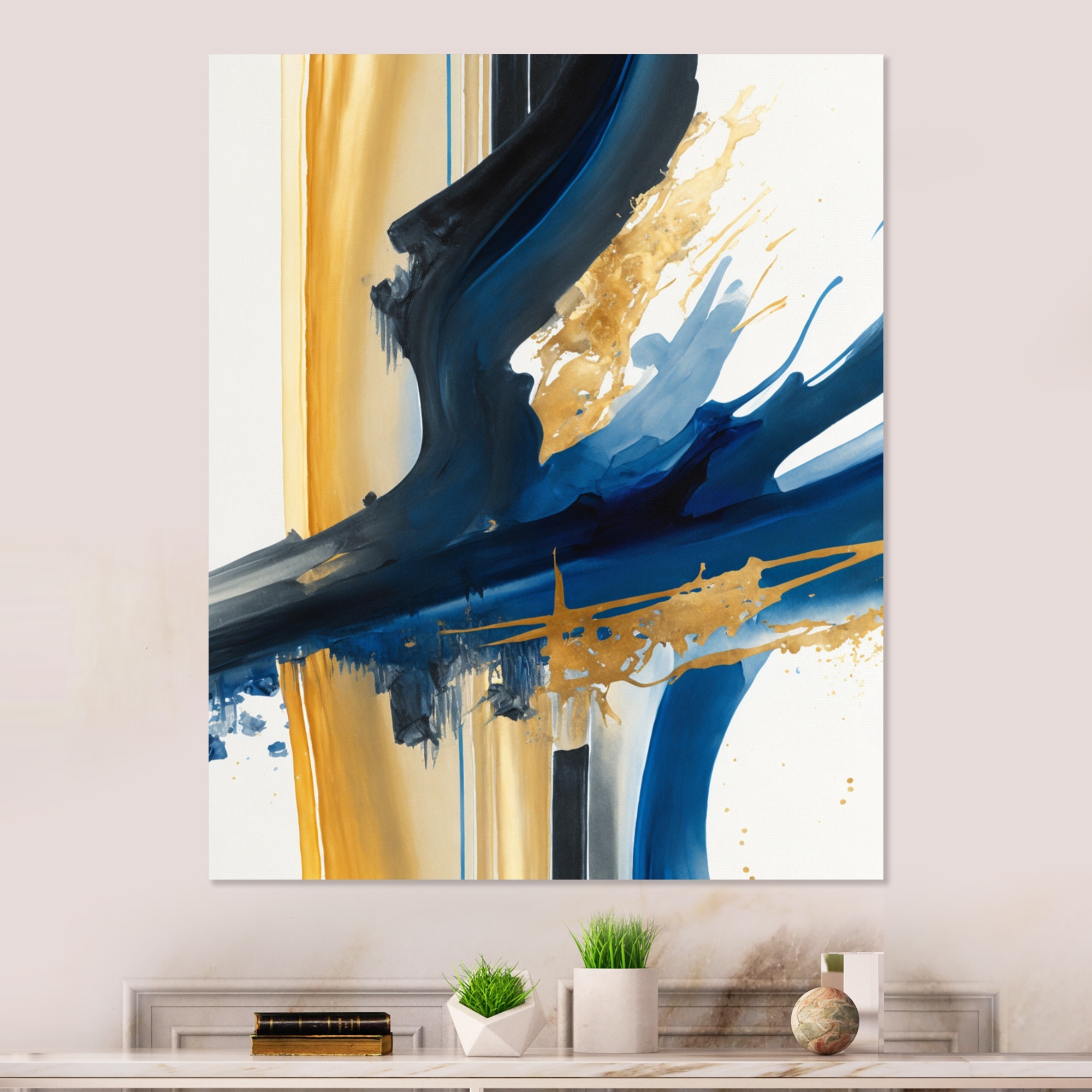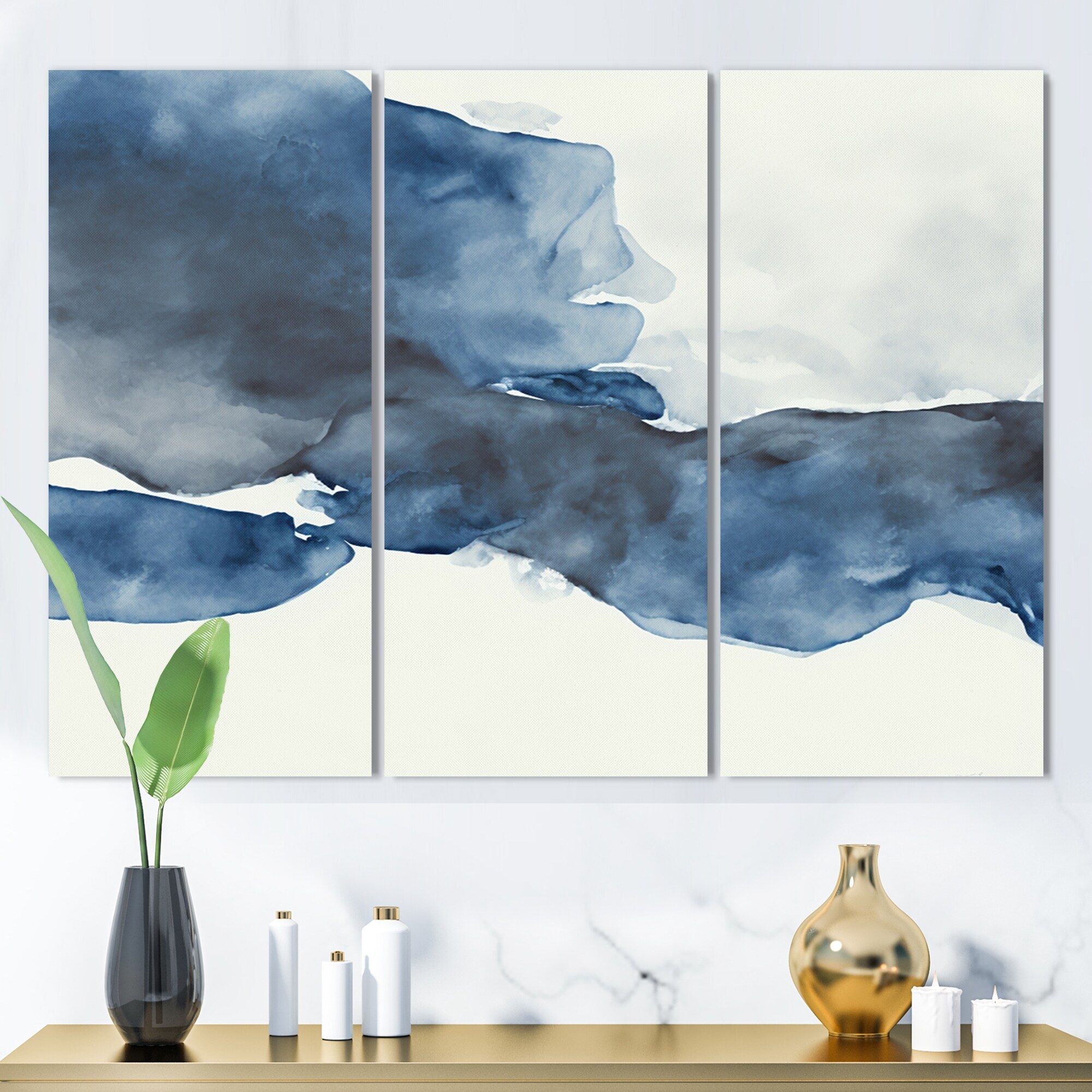 Designart "Imperial Blue Solitude V" Abstract Liquid Ink Canvas Wall Art Print