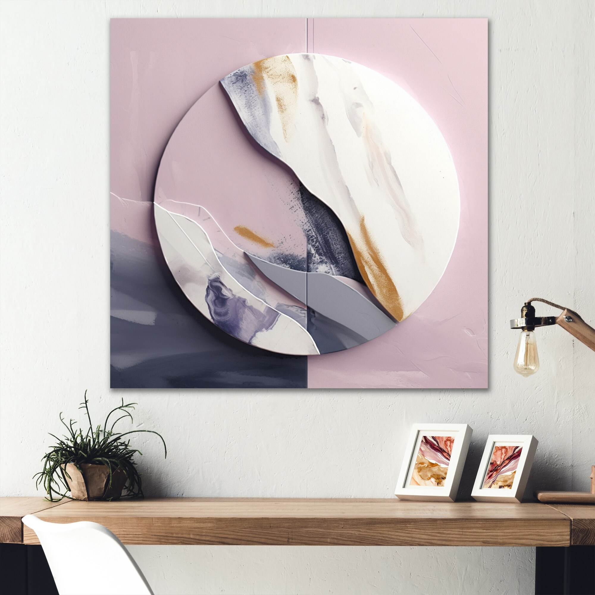 Designart "Pink Delicate Abstract Marble I" Abstract Metal Round Wall Art