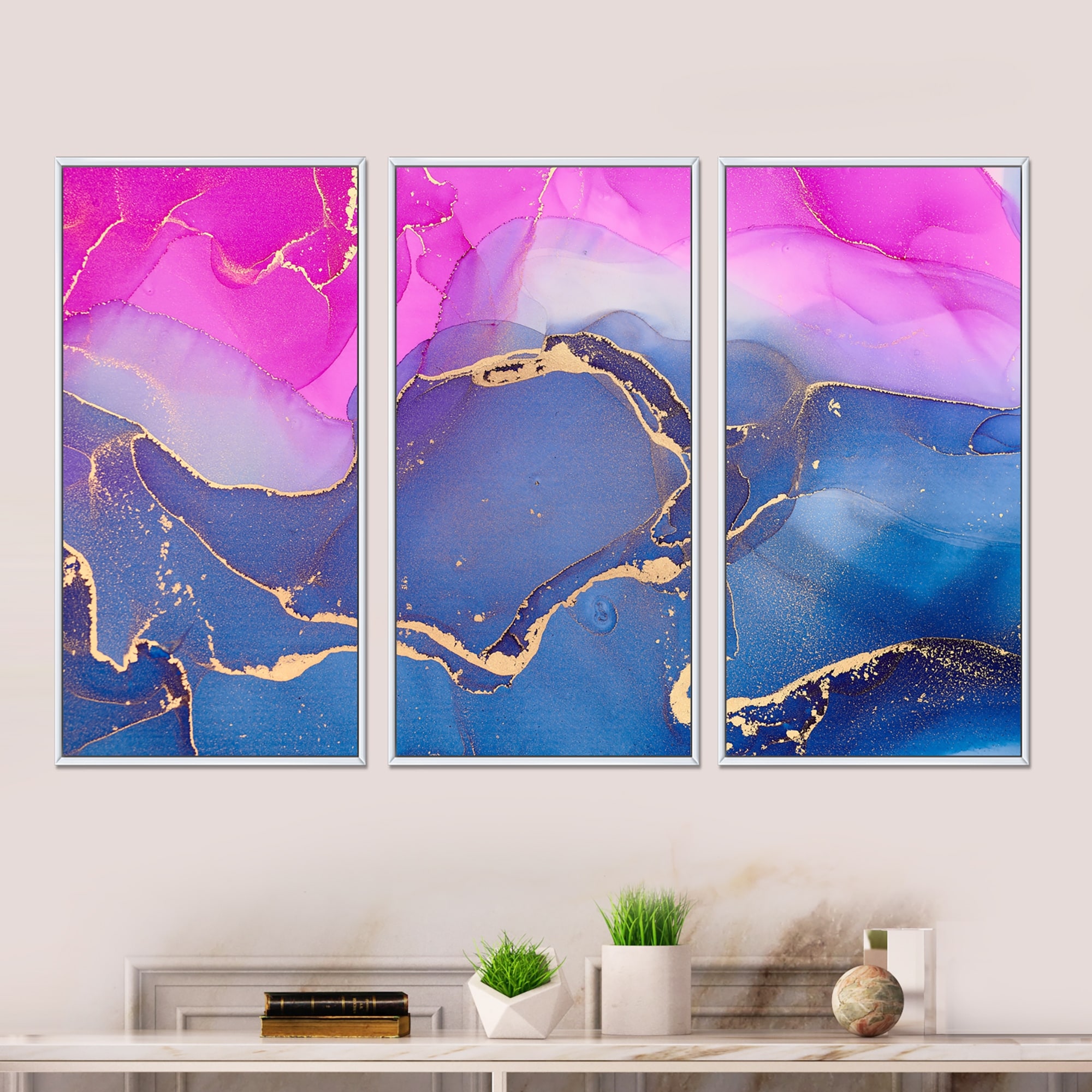 Designart "Abstract Geode Pink III" Abstract Marble Canvas Art Print - 3 Panels