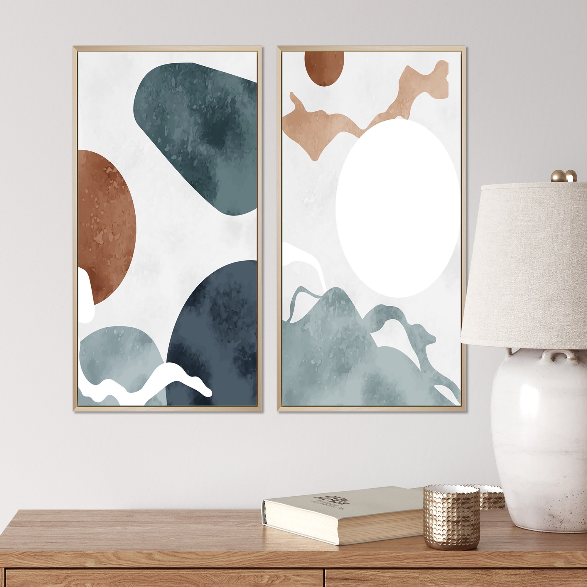 Designart "Retro Abstract Colorful Landscape Design IV" Landscapes Framed Art Set of 2 Pieces