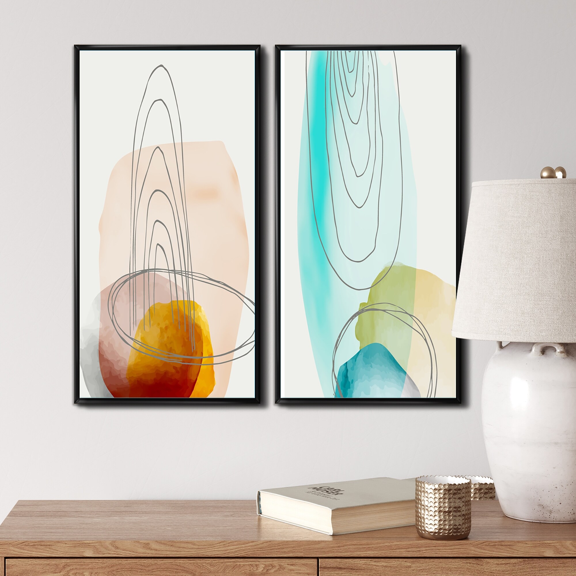 Designart "Trendy Abstracts With Colorful Shapes III" Geometric Framed Art Set of 2 Pieces