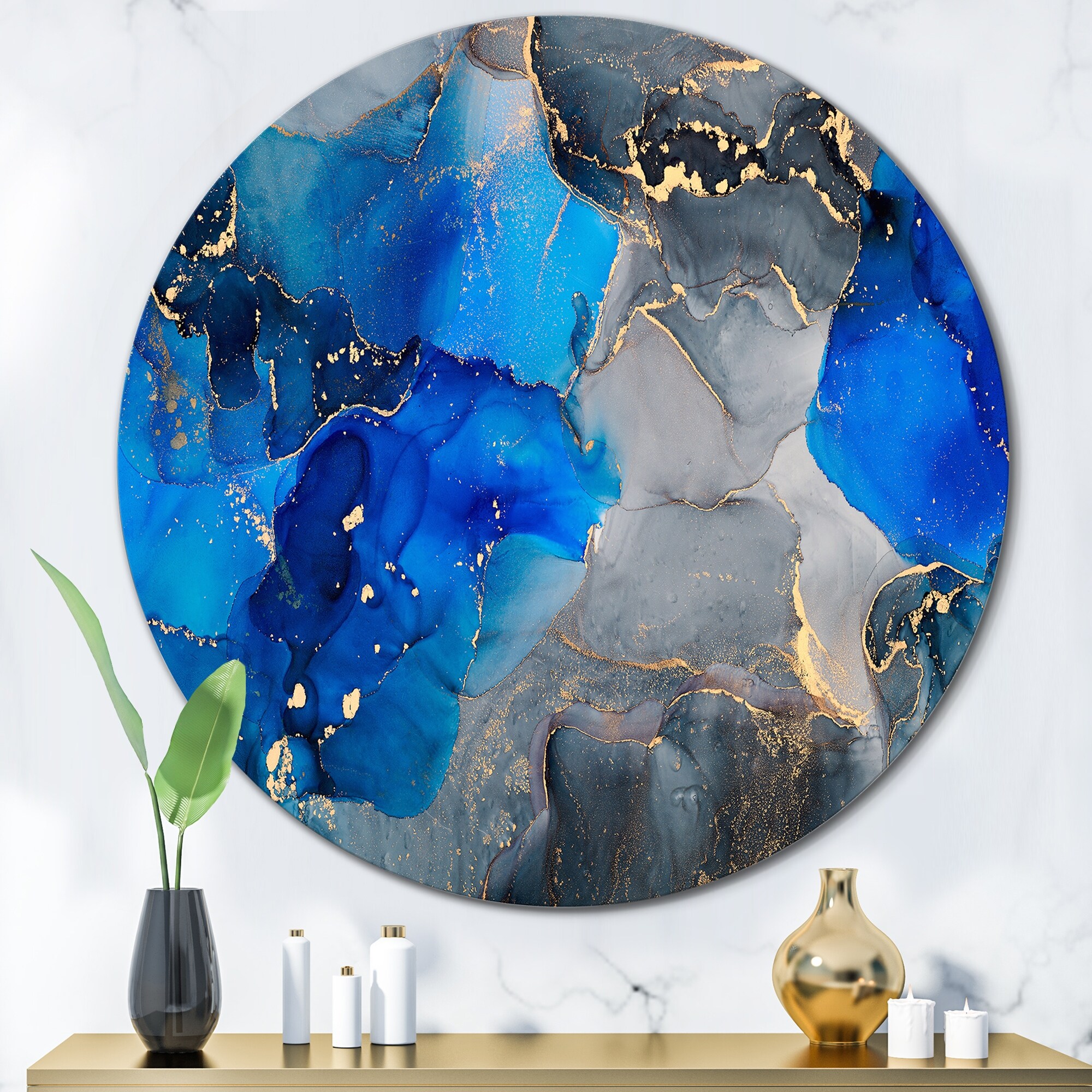 Designart 'Blue Luxury Abstract Fluid Art XV' Modern Metal Circle Wall Art