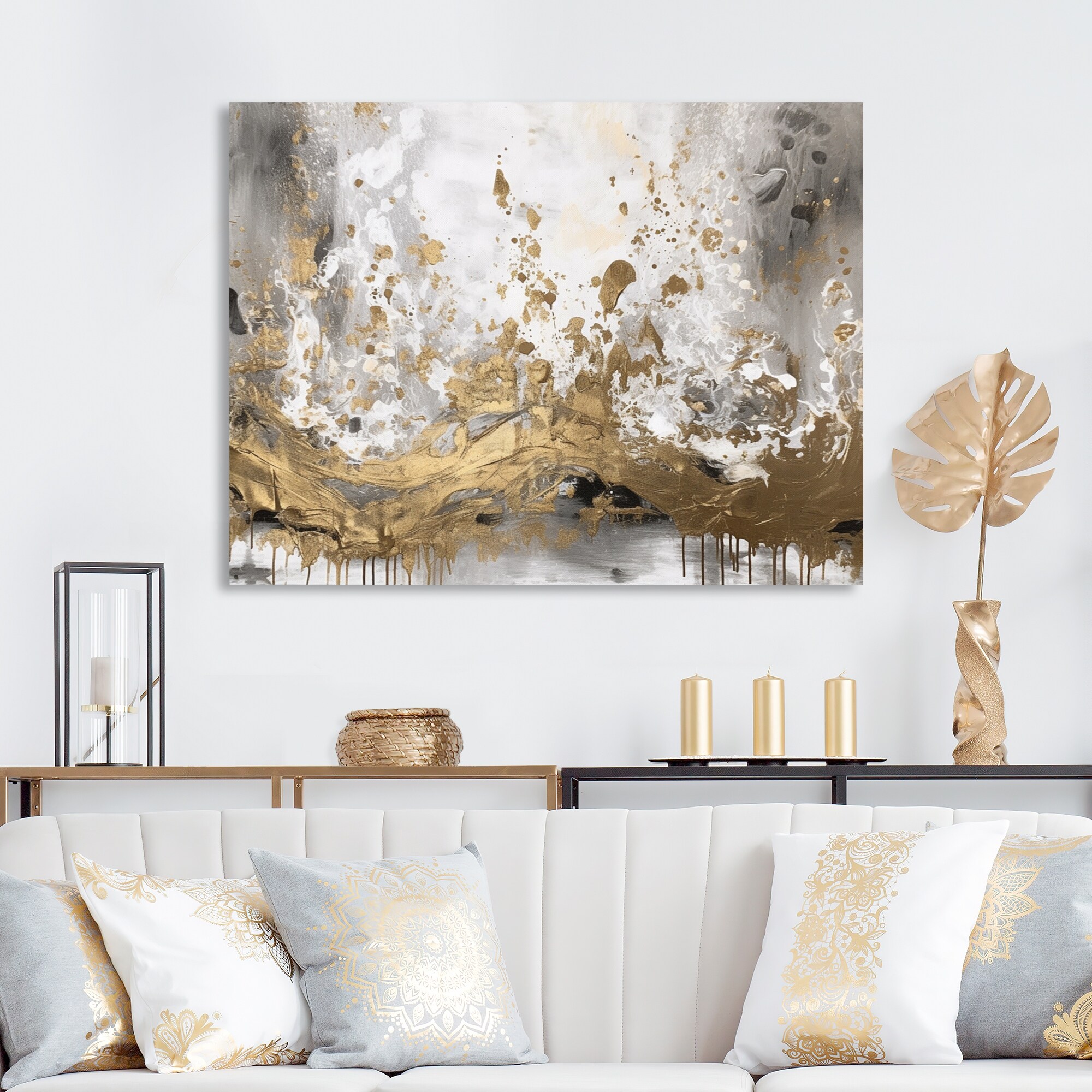 Designart "Modern White and Gold Abstract" Abstract Painting Canvas Wall Art