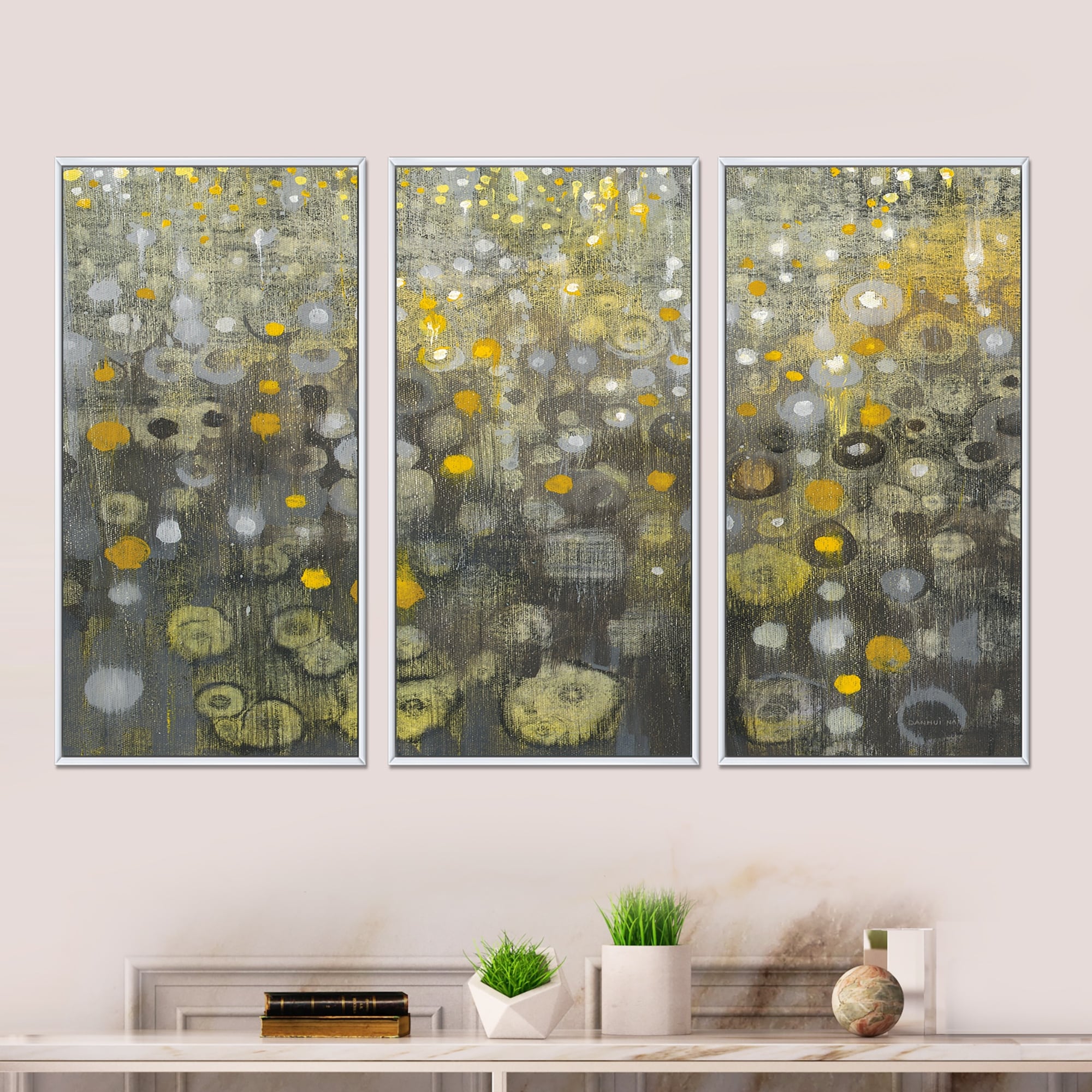 Designart "Rain Abstract V" Modern & Contemporary Framed Wall Art Set of 3 - 4 Colors of Frames