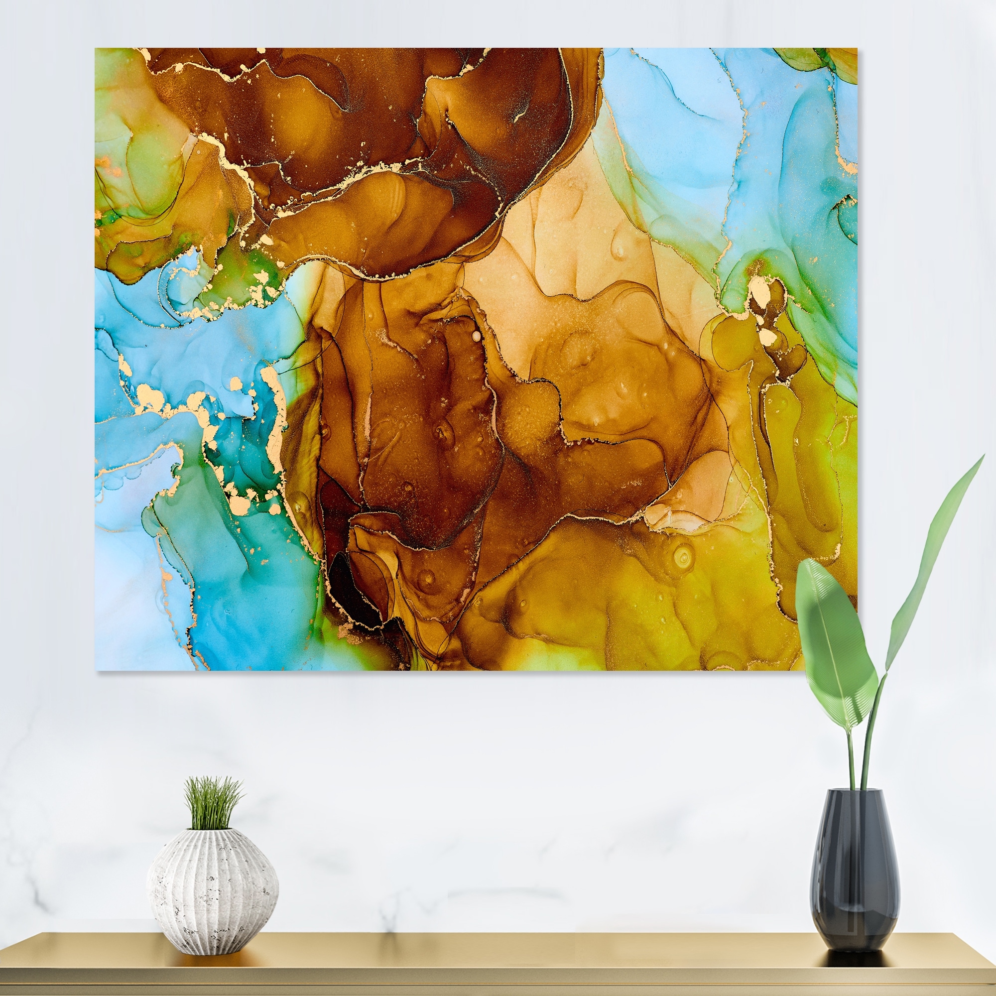 Designart "Brown And Turquoise Luxury Abstract Fluid Art II" Modern Canvas Wall Art Print