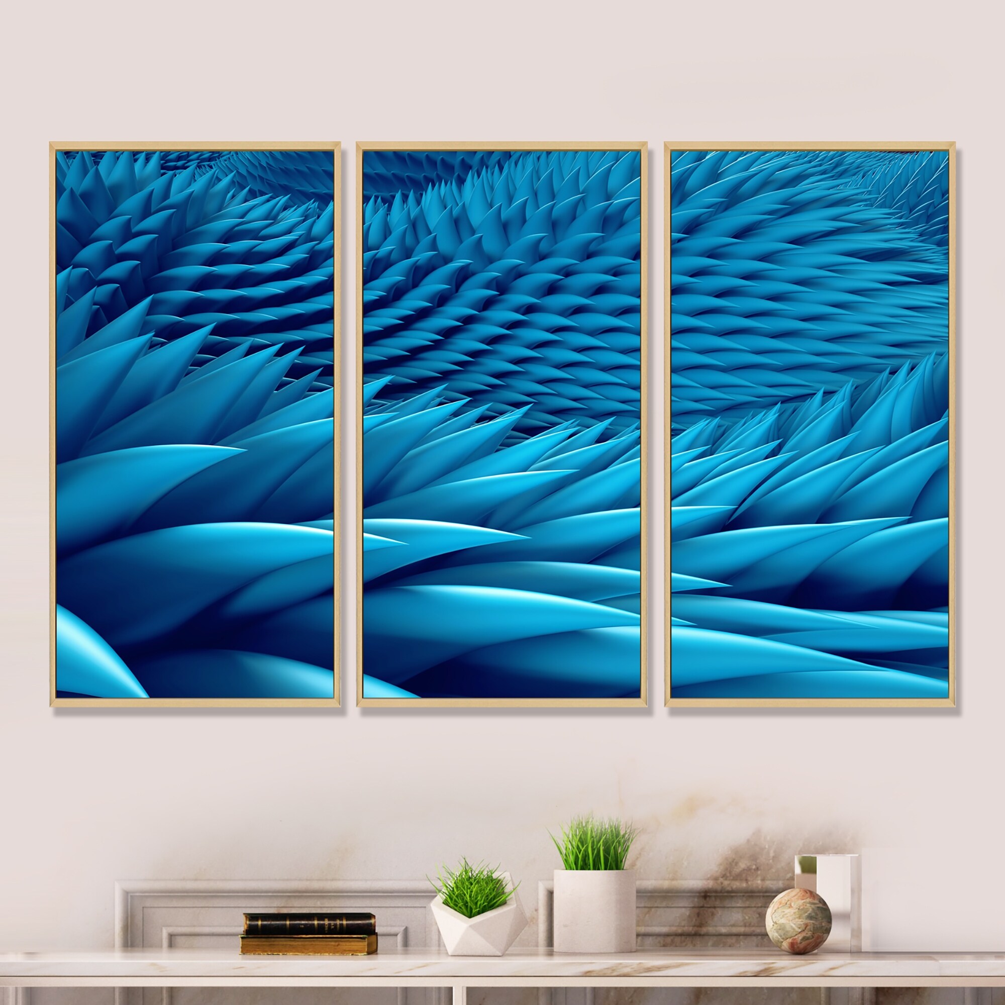Designart "Abstract Blue Wavy Background" Abstract Framed Canvas Wall Art Set of 3 - 4 Colors of Frames