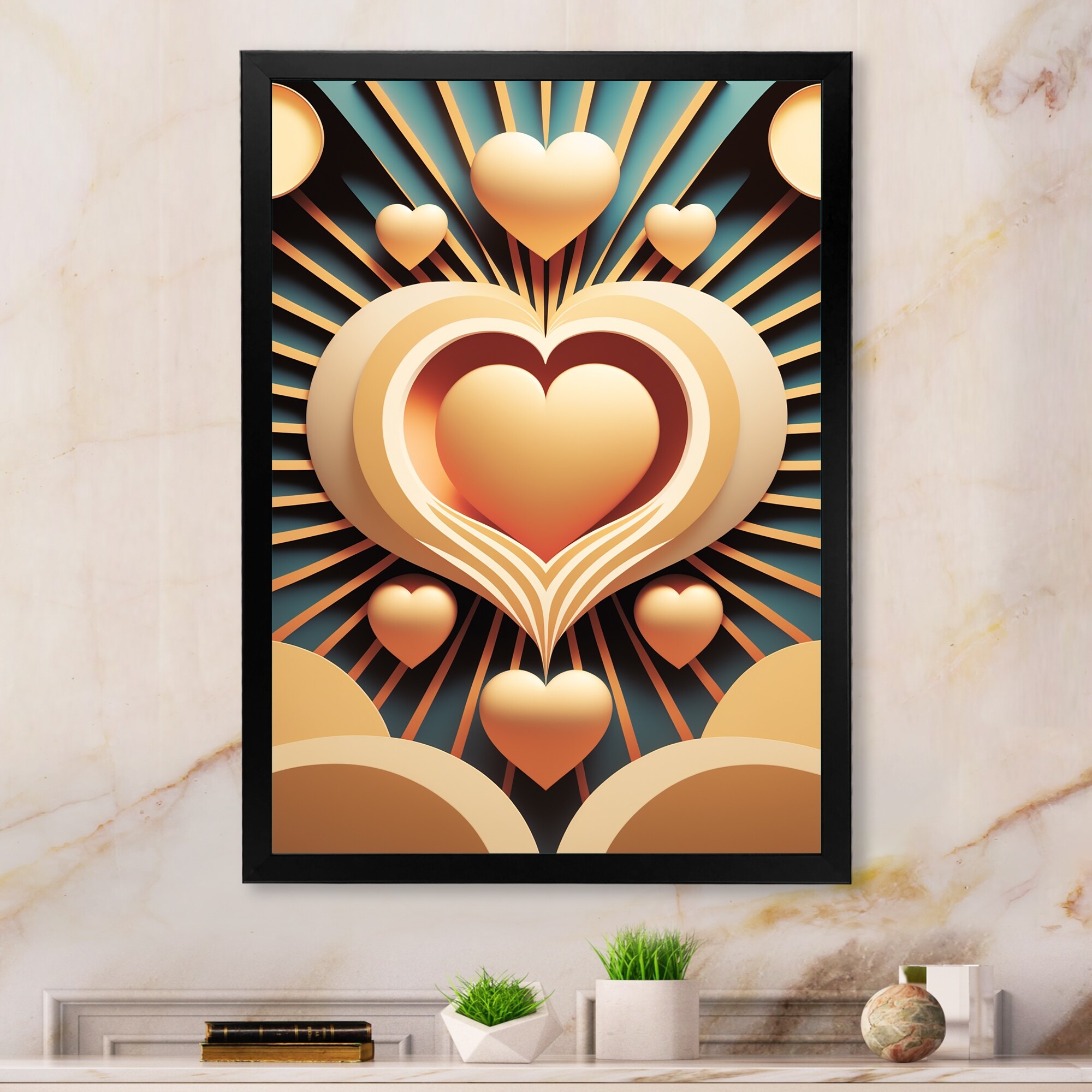 Designart "Shining Contemporary Gold Heart IV" Romantic Abstract Framed Art Print