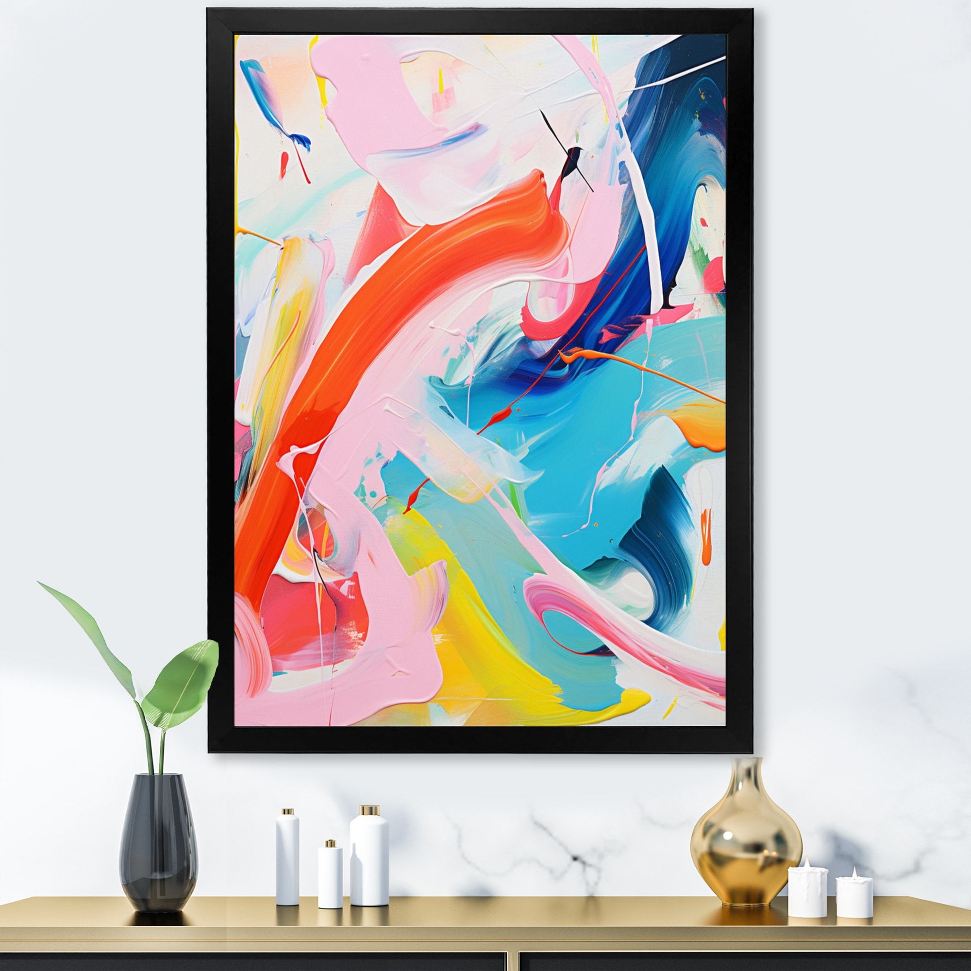 Designart "Pink And Blue Rhythm And Flow I" Abstract Shapes Framed Canvas Art Print